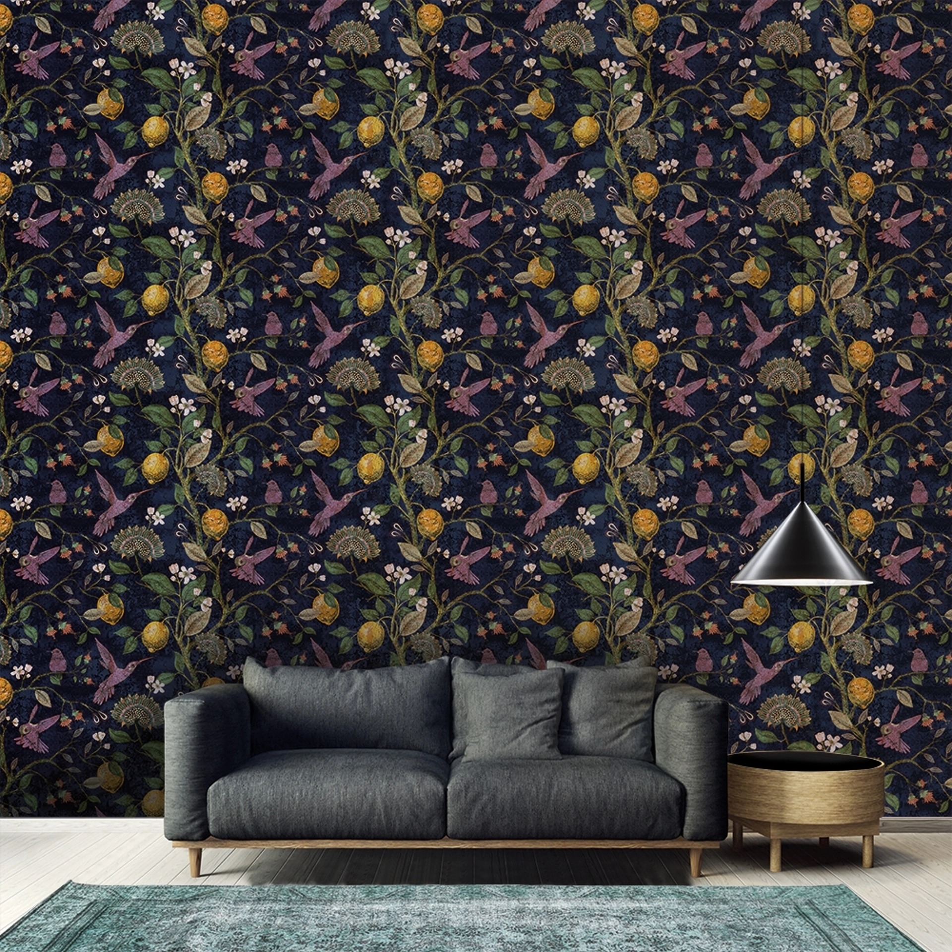 La Carta da parati vinilica moderna Lemons and birds di Adriani e Rossi ti sta aspettando: potrai customizzare le pareti di casa