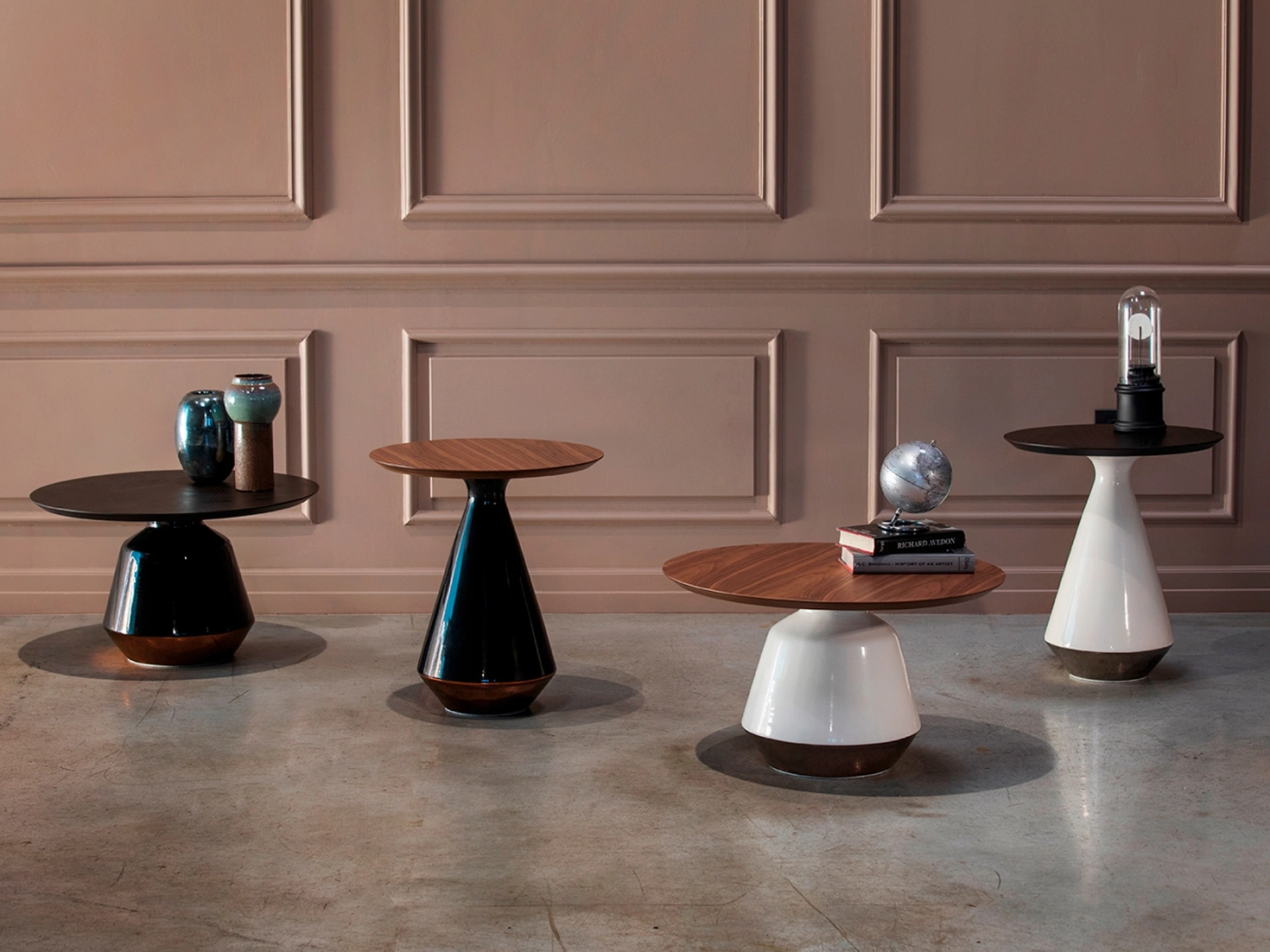 Modello con base in ceramica e piano in MDF rivestito in legno