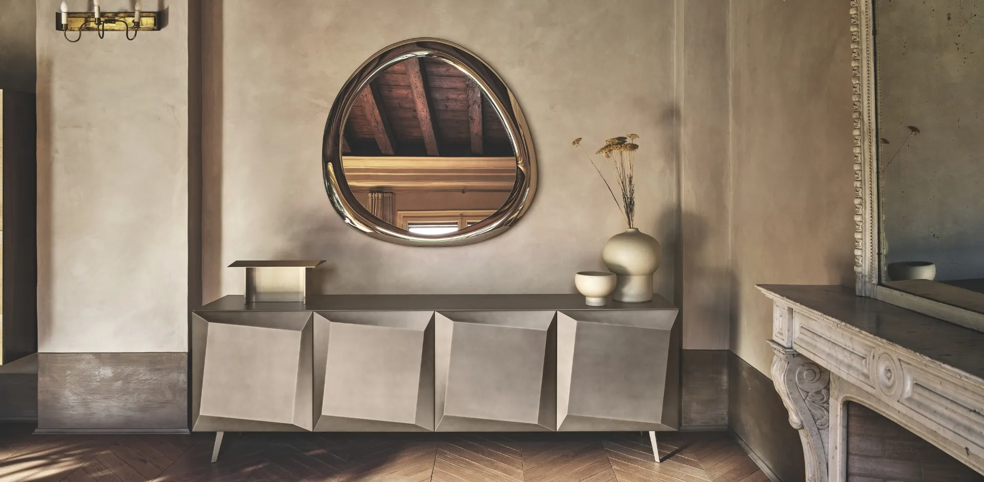 Scopri la nostra collezione di complementi d'arredo moderni e specchi come il modello Aura nell'immagine