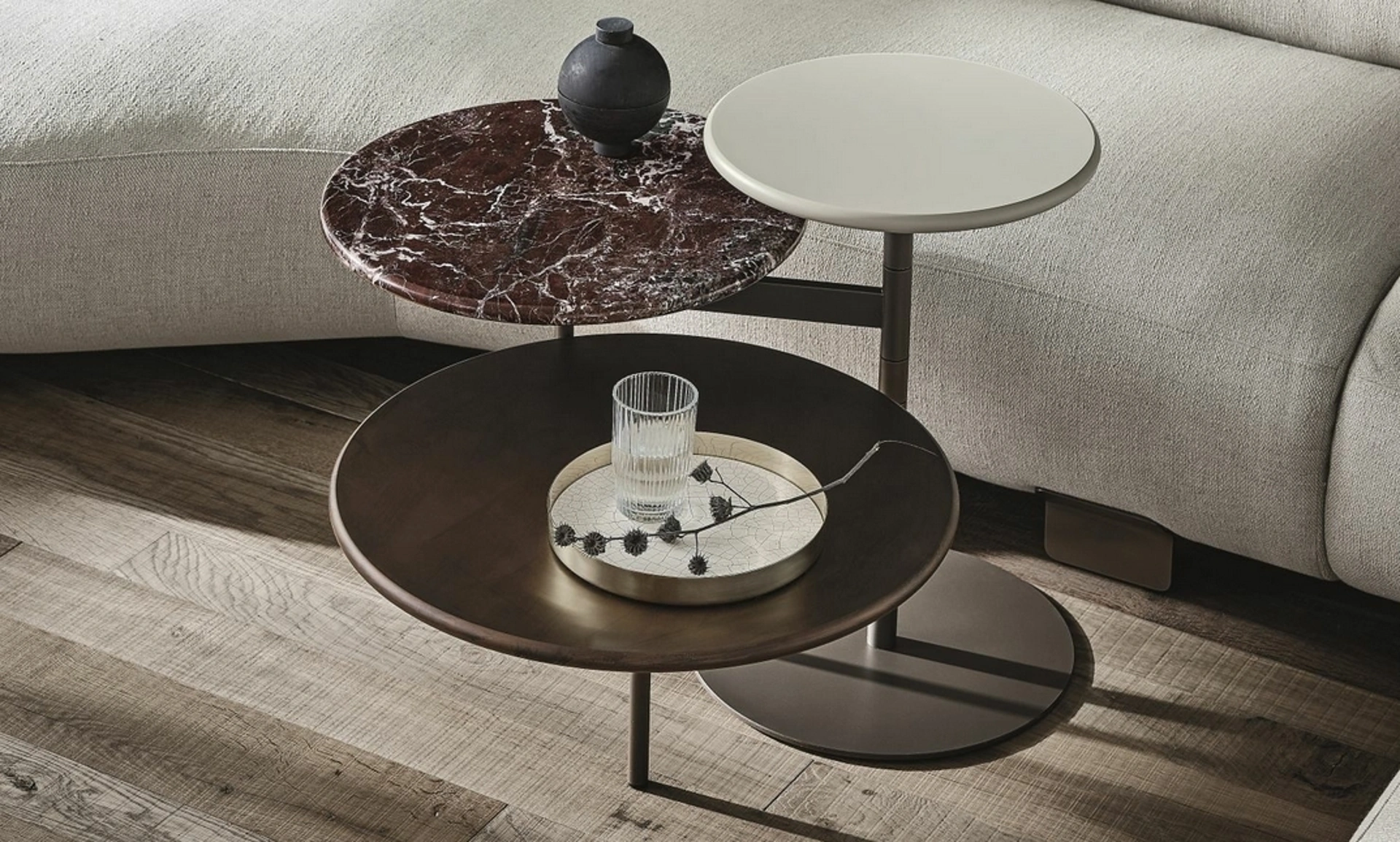 Presso Rusconi Arredamenti s.r.l. a Cirimido, ti aspetta il Tavolino Tris di Ditre Italia, un complemento d'arredo che incarna la versatilità e l'eleganza del design di Daniele Lo Scalzo Moscheri. Questo tavolino si distingue per i suoi tre piani tondi, progettati per ruotare in modo indipendente, consentendoti di personalizzare la configurazione in base alle tue esigenze e allo stile del tuo ambiente. Perfetto come elemento laterale o come fulcro funzionale al centro del divano, il Tris offre soluzioni dinamiche per ogni spazio living. Ti invitiamo a visitare il nostro showroom per scoprire di persona la sua innovativa flessibilità e la raffinata qualità dei materiali. La nostra consulenza esperta è a tua disposizione per guidarti nella scelta, e garantiamo un servizio di consegna e montaggio impeccabile in tutta la regione, direttamente da Rusconi Arredamenti s.r.l. di Cirimido.