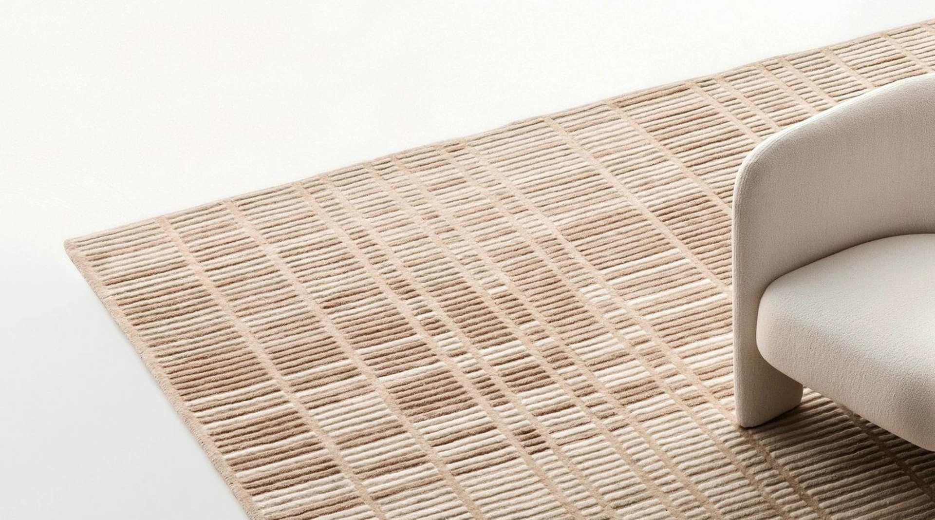 Scopri la nostra linea di complementi accessori moderni e tappeti come il modello Hertz nell'immagine