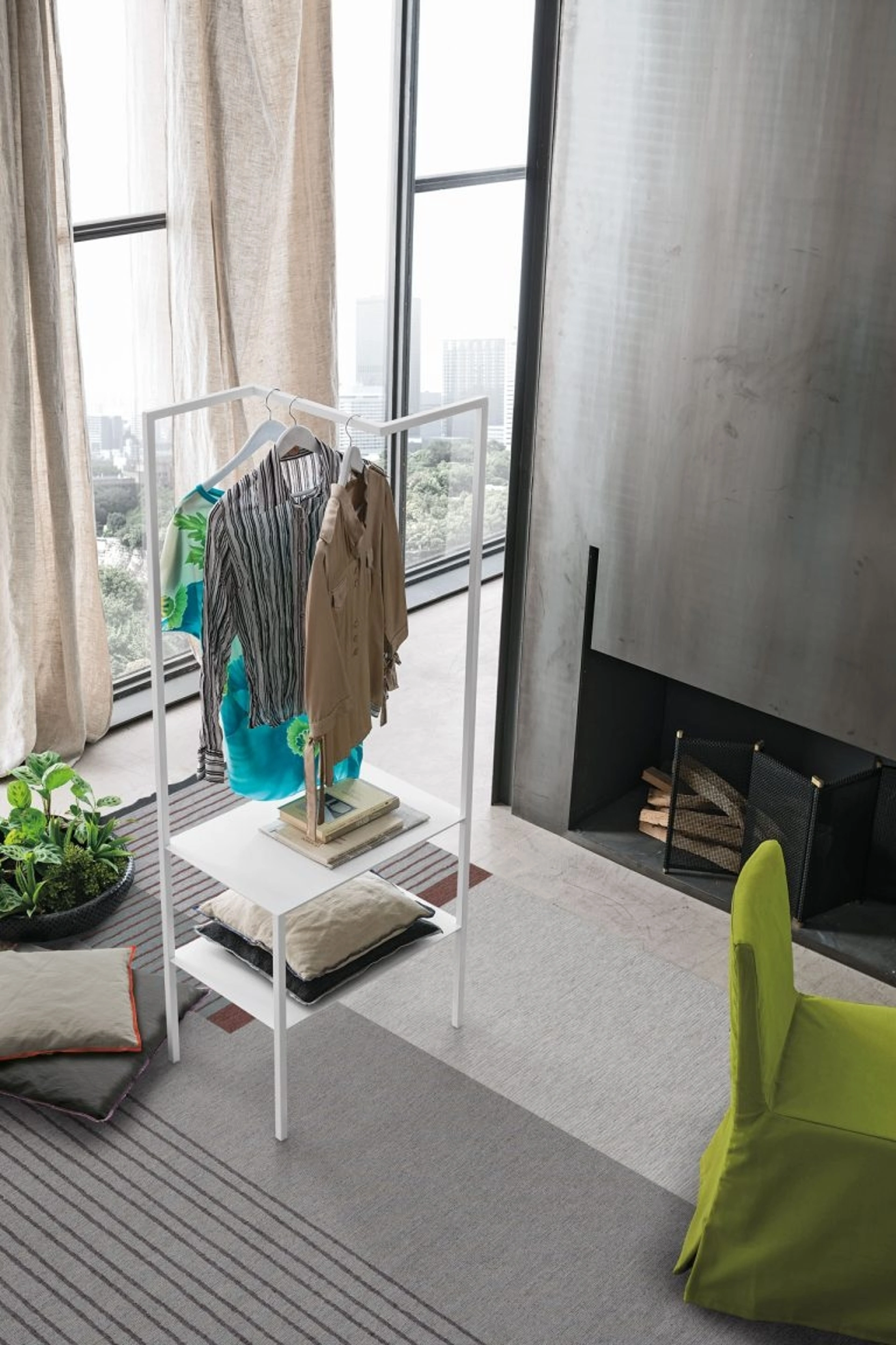Contenitore e appendiabiti con struttura in metallo laccato
