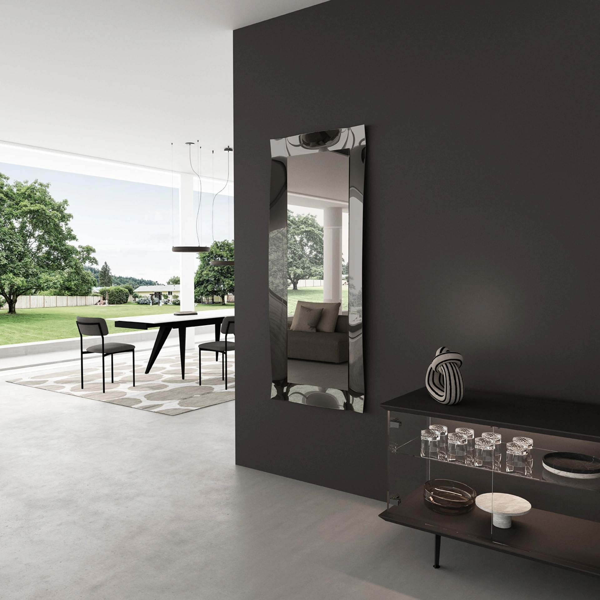 Scoprite l'esclusivo Specchio Parete LUXOR di Easyline, ora esposto e disponibile presso il nostro showroom Rusconi Arredamenti s.r.l. a Cirimido. Questo pezzo d'arredo incarna un design raffinato, dove l'eleganza classica si fonde con tocchi contemporanei, offrendo un impatto visivo davvero unico. Caratterizzato da una generosa forma rettangolare e una distintiva cornice in vetro dal profilo sinuoso, si integra armonicamente con lo specchio centrale. Un'opera 100% Made in Italy, che celebra la modernità e la sofisticazione. La nostra pluriennale esperienza nel settore arredo è al servizio di chi cerca qualità e professionalità, offrendo soluzioni personalizzate per ogni esigenza abitativa a Cirimido e nei comuni limitrofi.