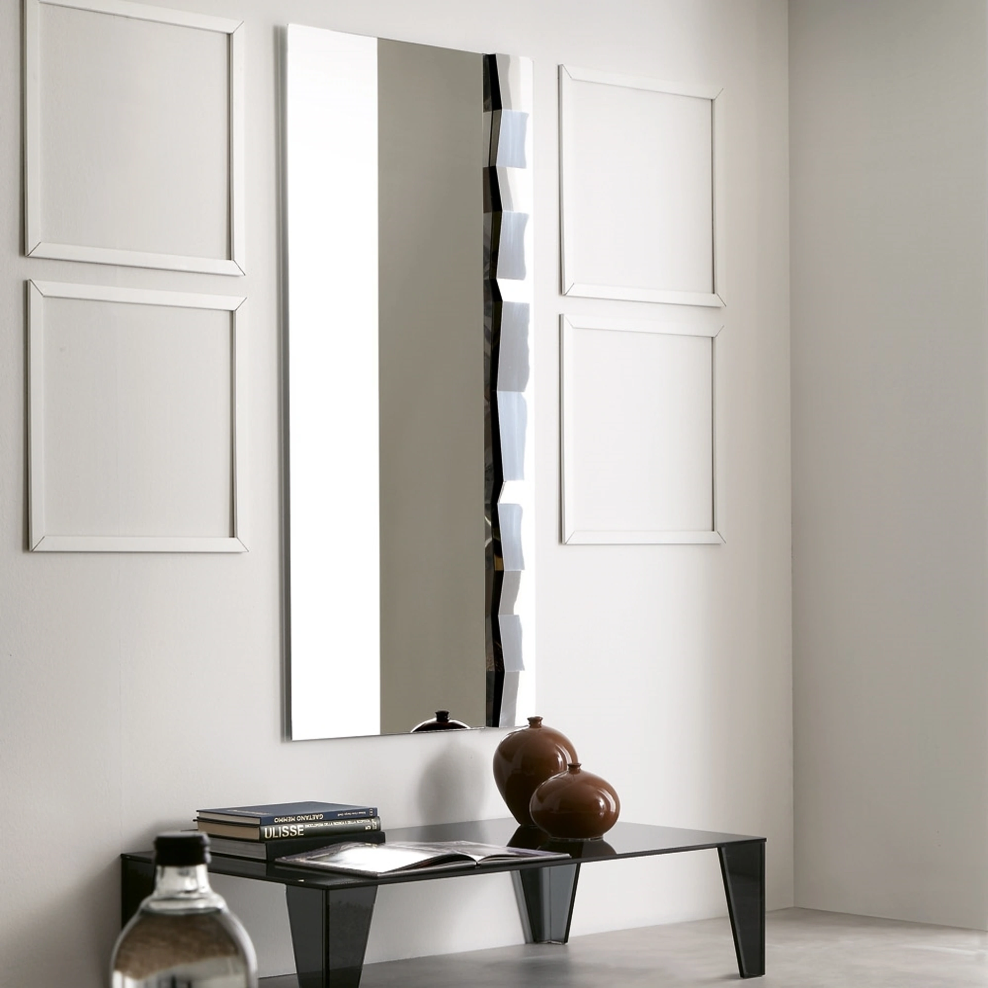 Specchio Valencia di Ponti Terenghi senza cornice: aggiungerà carattere e charme a un locale arredato con mobili ed elementi accessori dai richiami moderni. Nel nostro punto vendita potrai vedere dal vivo la qualità dei modelli di specchi moderni senza cornice del brand, proprio come questa proposta in foto. Complementi e specchi completano l'arredo di casa, occupando lo spazio in modo utile e rendendolo accogliente e bello a vedersi. Molto versatili e multifunzionali, i Complementi moderni senza cornice svolgono funzioni differenti: ultimano le doti di funzionalità e il valore estetico dell'ambiente. Le composizioni di charme del brand Ponti Terenghi personalizzano l'habitat con i loro colori e stile, ricreando particolari atmosfere arredative.