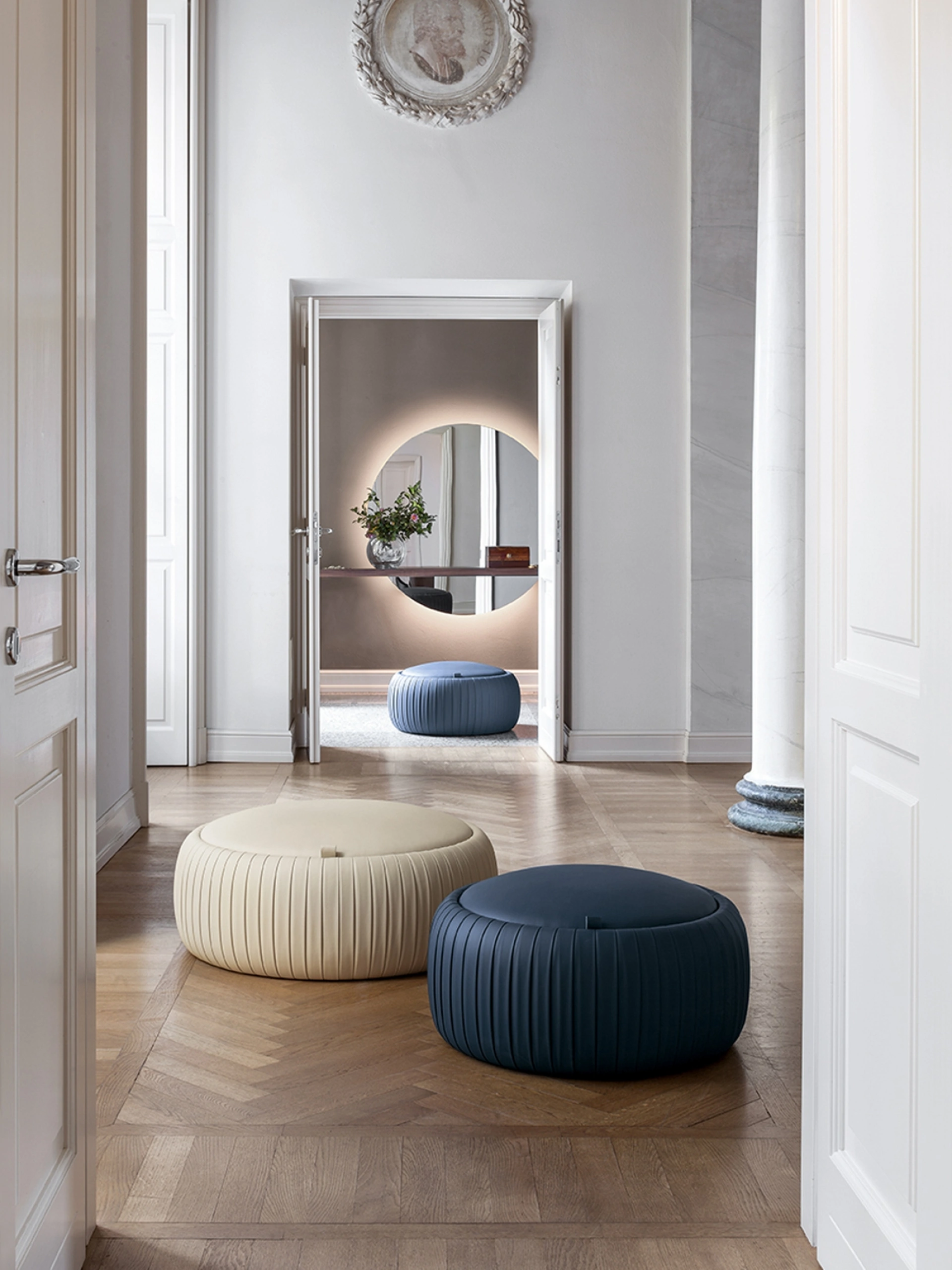 Quali sono le caratteristiche distintive del Pouf Plissé di Tonin Casa?Il Pouf Plissé di Tonin Casa si distingue per il suo design raffinato e le finiture di alta qualità. È un complemento d'arredo versatile, ideale per aggiungere un tocco di stile e funzionalità a ogni ambiente.