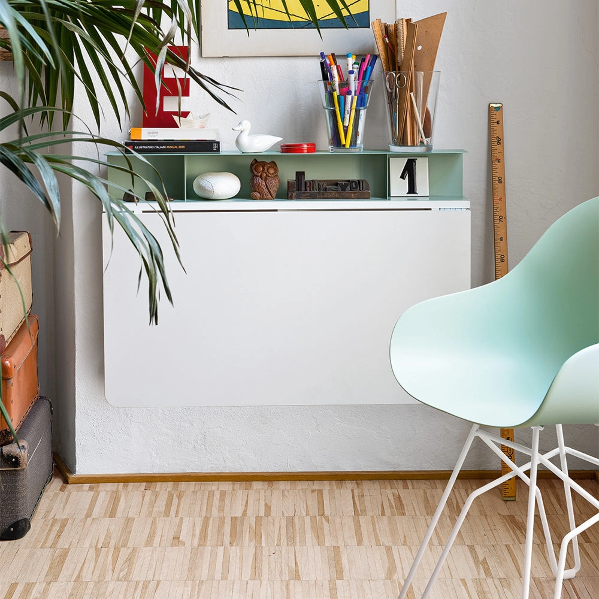 Il tavolo Connubia Quadro incarna la massima espressione di versatilità e ingegneria funzionale per ambienti moderni. Questo arredo salvaspazio, concepito per fissaggio a parete, offre un piano rettangolare in legno nobilitato, ideale per attività di lavoro o come supporto per un pasto rapido. La sua peculiare struttura permette una chiusura compatta, trasformandolo in una discreta mensola quando non in uso. Un dettaglio distintivo è la mensola portaoggetti superiore in lamiera piegata, dotata di rinforzi verticali per una maggiore stabilità. Disponibile nella raffinata finitura bianco ottico opaco, con la possibilità di personalizzare l'alzatina in metallo con diverse colorazioni opache, il Quadro rappresenta una soluzione tecnologicamente avanzata per ottimizzare lo spazio senza sacrificare l'estetica. La scelta di materiali di alta qualità e l'attenzione al dettaglio costruttivo assicurano una durabilità e una funzionalità superiori, elementi chiave per un investimento d'arredo intelligente.