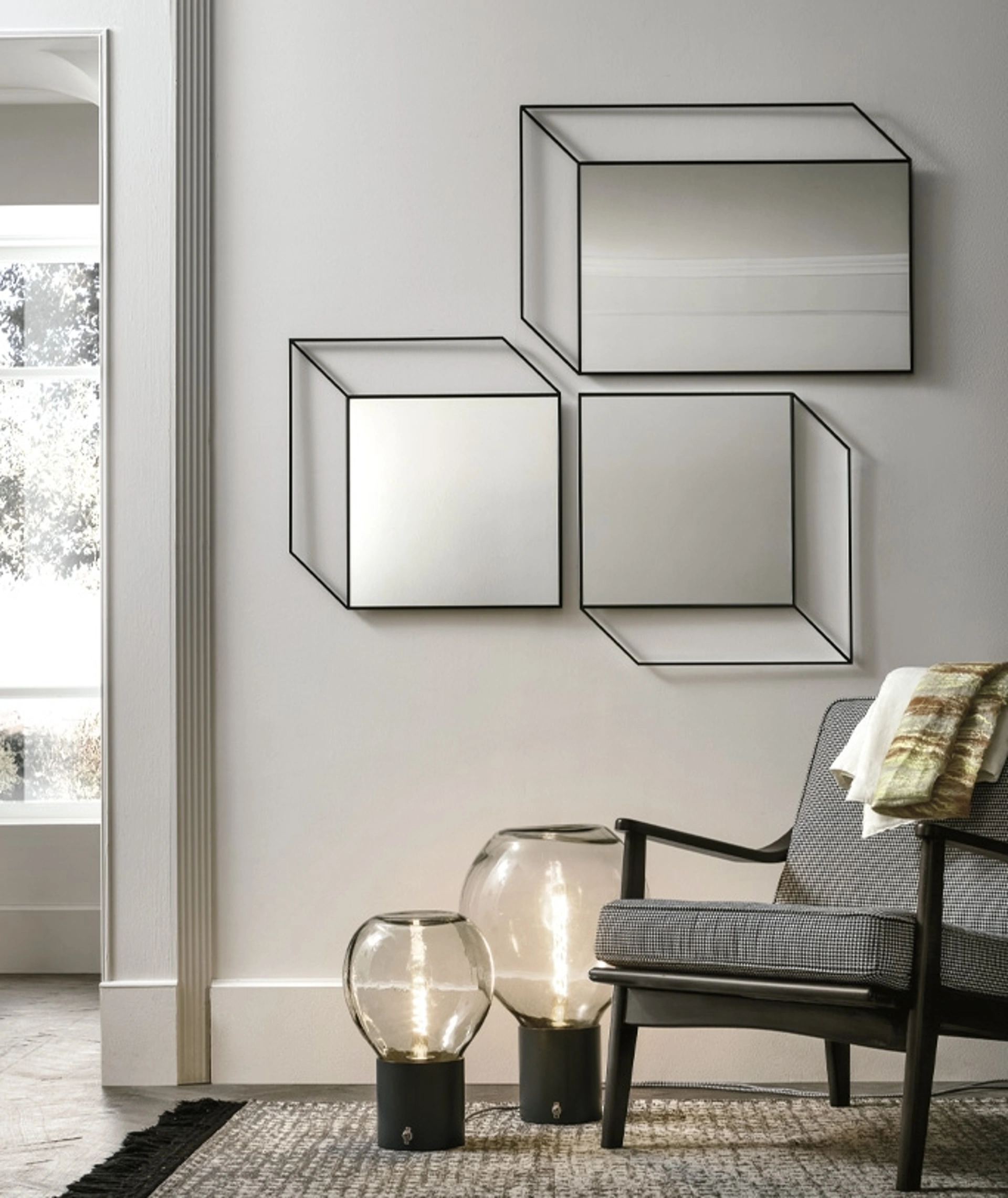 Lo specchio Sguardo di Target Point si distingue dal design geometrico e strutturato, che evoca l'eleganza di solidi come cubi e parallelepipedi. Realizzato con una robusta struttura in metallo nero e un lucido specchio argento, è proposto in due configurazioni dimensionali: un formato quadrato da 57x57 cm e uno rettangolare da 57x87 cm. Queste caratteristiche tecniche lo rendono un elemento distintivo, capace di integrarsi armonicamente in contesti d'arredo contemporanei, dal living all'ingresso, fino alla zona notte. Per approfondimenti sui materiali impiegati e le finiture disponibili, invitiamo a consultare la documentazione tecnica del prodotto.