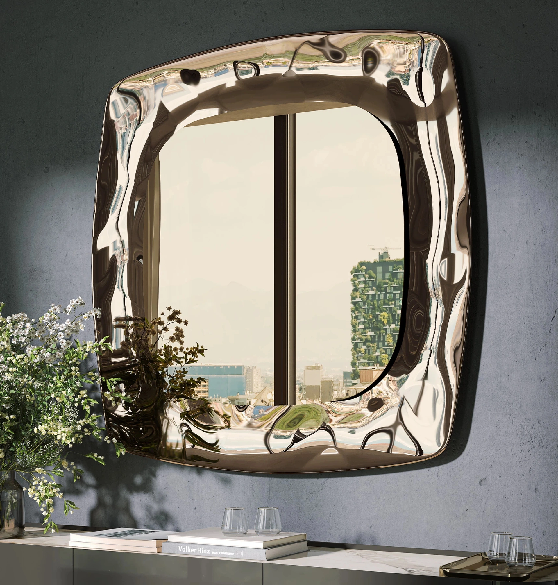 Lo specchio Eos di Tonin Casa rappresenta una fusione magistrale di arte e ingegneria estetica. La sua struttura si distingue per una cornice in vetro fuso, caratterizzata da superfici che generano un dinamico gioco di luci e ombre, ponendosi in sofisticato contrasto con la linearità dello specchio centrale. Questa interazione tra elementi complementari culmina in un oggetto dalle proporzioni visive intrinsecamente armoniose, capace di elevare l'estetica di qualsiasi spazio. Le sue geometrie sono attentamente calibrate per bilanciare fluidità e rigore formale, creando un equilibrio visivo che definisce ogni contorno e linea. Questo elemento di design è concepito per integrarsi armonicamente in diversi contesti, offrendo una soluzione estetica raffinata e funzionale che rispecchia l'eccellenza del brand.