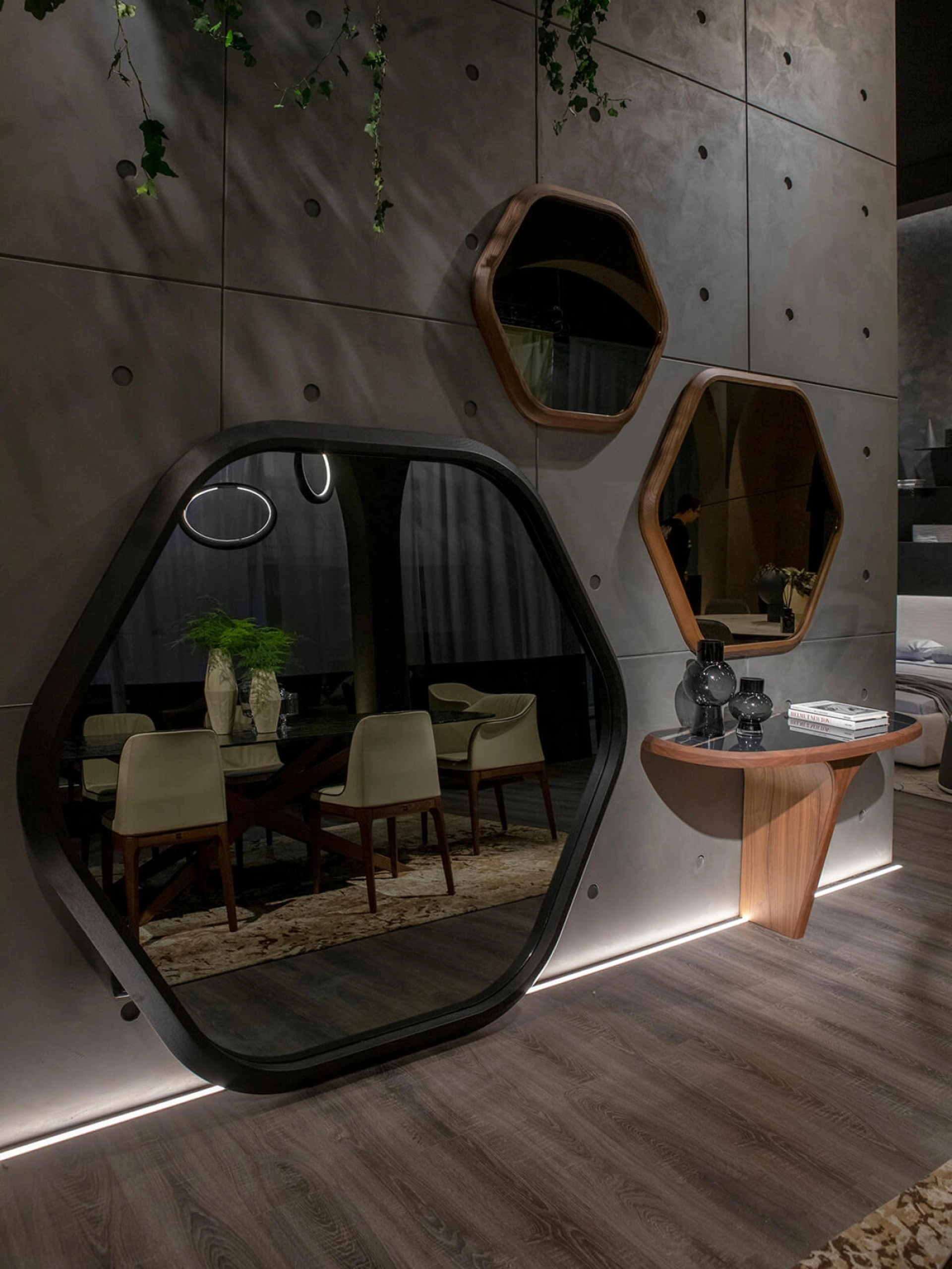 Offriamo un servizio completo per lo Specchio Hive, un complemento d'arredo dal design distintivo firmato Angelo Tomaiuolo. Siamo lieti di estendere i nostri servizi di consulenza, progettazione e installazione professionale a diverse località, inclusi i residenti di Como, Monza, Varese. La sua ispirazione naturale, con le geometrie dell'alveare, viene valorizzata dalle finiture in legno massello come frassino nero o noce canaletto, e dalle superfici specchianti fumè, bronzo o argento, tutte scelte con l'assistenza del nostro team di esperti per armonizzarsi perfettamente con il vostro ambiente. La versatilità di questo specchio lo rende ideale per ogni spazio living, e il nostro obiettivo è garantire che ogni cliente riceva la soluzione più adatta alle proprie esigenze. Con un focus sulla durabilità e sullo stile senza tempo, il nostro impegno si estende alla vostra piena soddisfazione a lungo termine, supportata da una garanzia affidabile e da un'assistenza post-vendita dedicata.