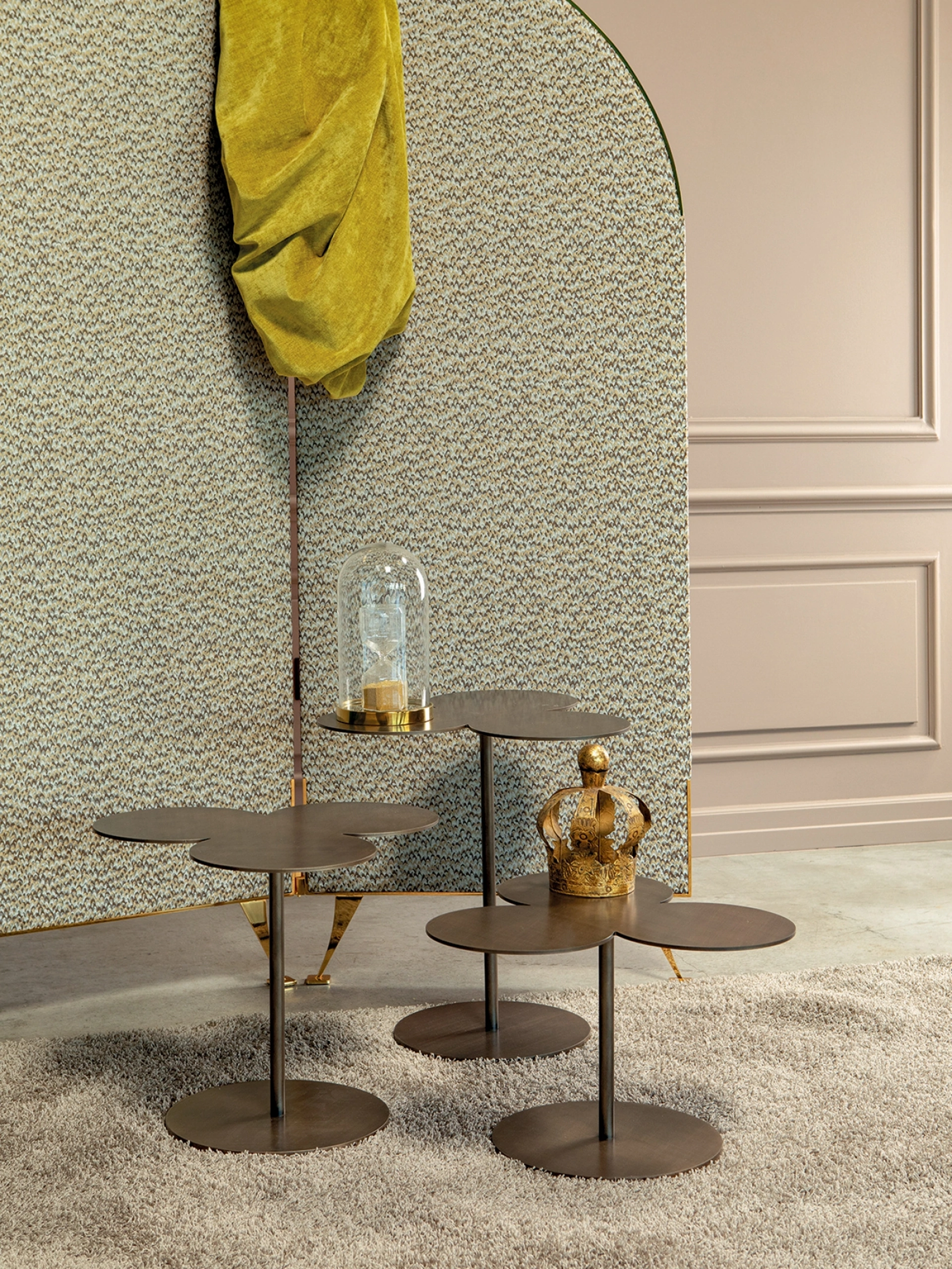 Dalla camera da letto al living, questi accessori sono oggetti essenziali per completare perfettamente le doti pratiche e le doti estetiche dei locali. Stile e praticità connotano le diverse soluzioni del brand, tra cui questa proposta di Tavolino Ryazka con top a forma di trifoglio di Tonin Casa in metallo di grande valore decorativo. In negozio potrai vedere dal vivo tutte le più esclusive composizioni del rinomato brand, tra cui trovi pure quelle complete di tavolini design in metallo. La firma Tonin Casa è sinonimo di qualità e stile: visitarci vuole dire affidarsi alla pluriennale competenza e dedizione del brand. Per impreziosire al meglio gli spazi indoor basta un dettaglio da conseguire inserendo in mezzo ai restanti pezzi d'arredo alcuni Complementi di qualità.