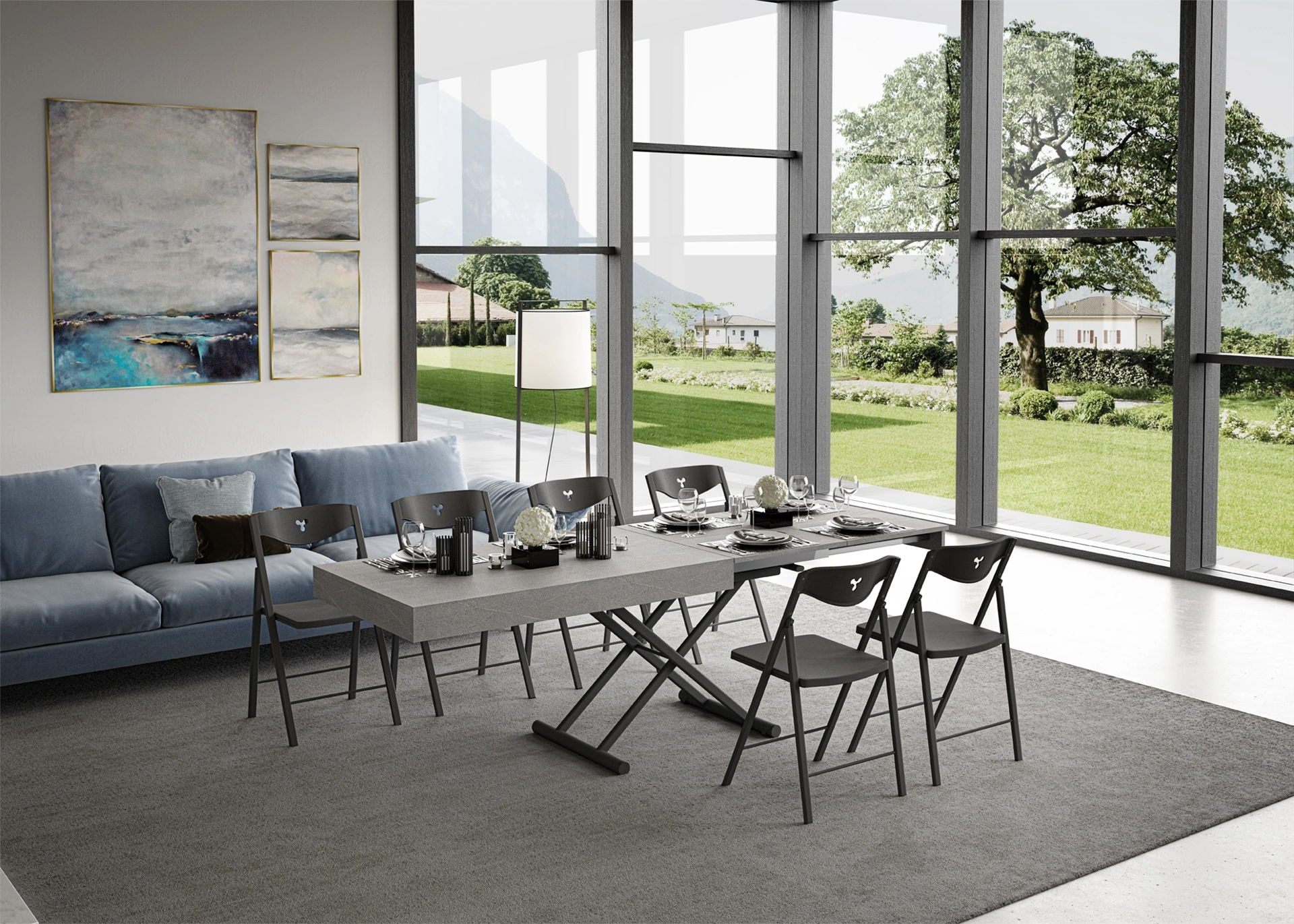 Il tavolino trasformabile Tavolino Trasformabile Up di Easyline è la soluzione ideale per chi cerca funzionalità e stile senza compromessi, con un servizio completo che copre aree come Lugano, Bellinzona e dintorni. Grazie al nostro servizio di consegna e montaggio professionale, riceverai il tuo nuovo arredo direttamente a casa, pronto all'uso. Questo tavolino offre un basamento in metallo e un meccanismo a gas per regolare l'altezza (da 28.5 cm a 85 cm) con precisione millimetrica. Il piano e le allunghe in eco legno, disponibili in varie finiture, si estendono facilmente da 126 cm fino a 236 cm, trasformandosi in un ampio tavolo da pranzo per 10 persone. Le ruote a scomparsa garantiscono una movimentazione agevole, rendendolo perfetto per ogni esigenza di spazio. Offriamo un'assistenza post-vendita completa e una garanzia estesa per assicurarti la massima tranquillità e durata nel tempo del tuo investimento, supportando la tua scelta con professionalità.