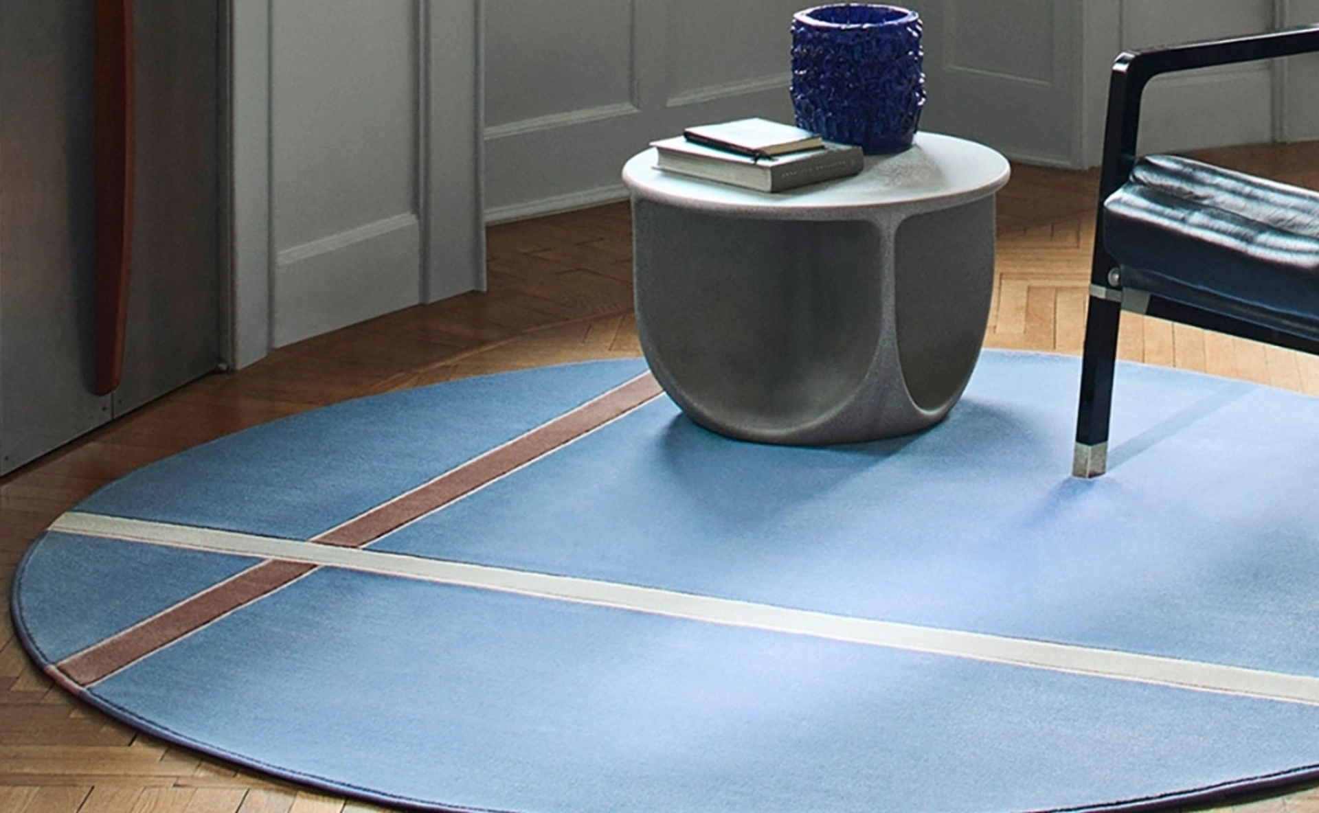 Scopri la nostra collezione di complementi accessori moderni e tappeti come il modello Vortex in foto