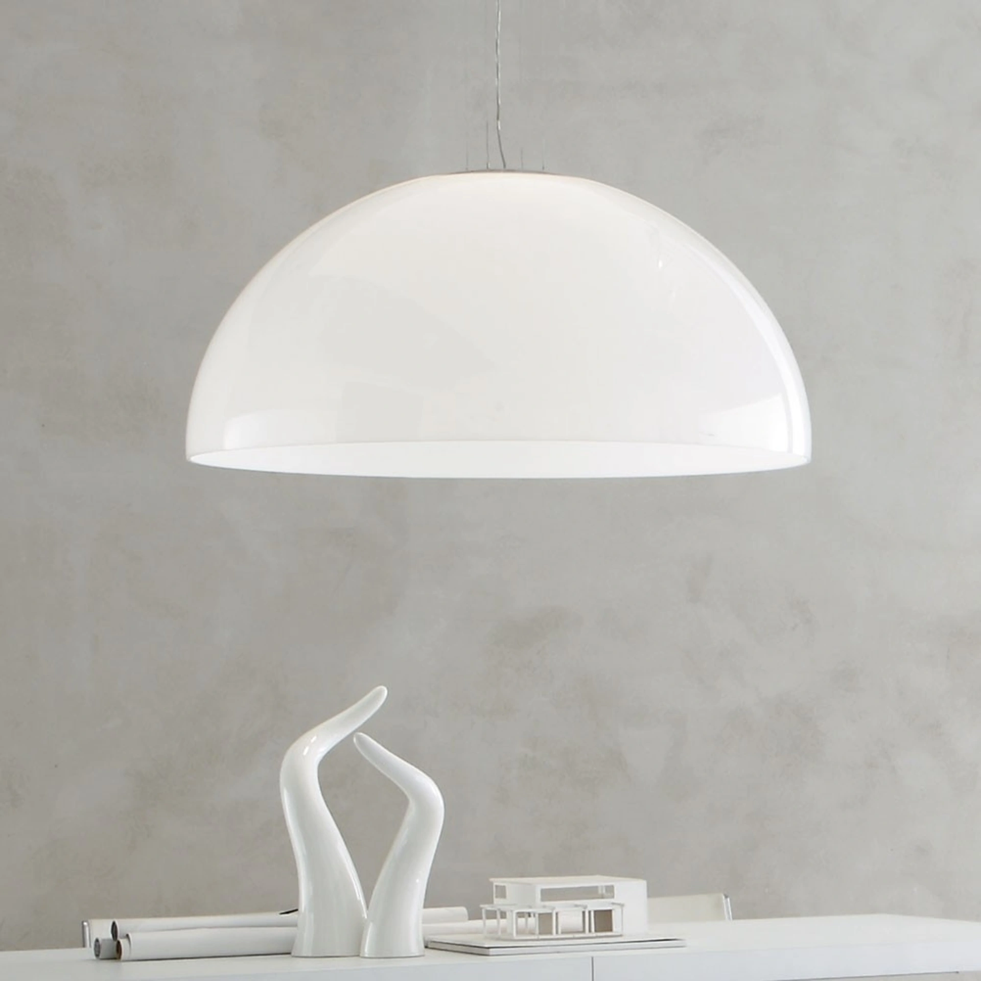Illuminazione a sospensione in plastica: il modello Moon per interni qui visibile ti aspetta