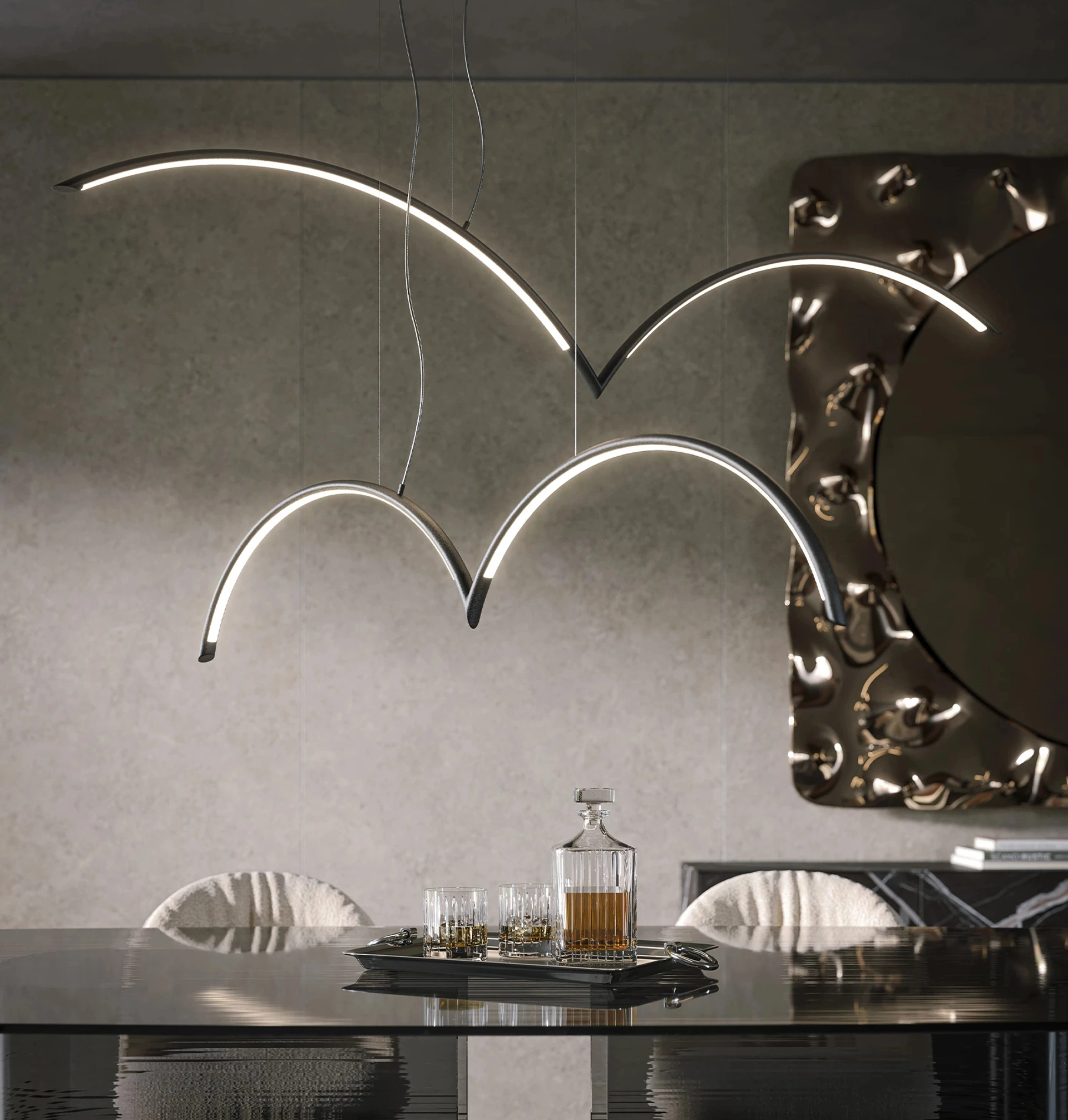 Guarda la nostra collezione di lampade a sospensione per interni e ti garantiremo la completa contentezza a progetto terminato. Ricorda che le lampade impreziosiscono l'arredo di casa creando particolari atmosfere di charme, ma ti accompagnano anche in tutti i gesti di ogni giorno. Le fonti luminose fanno luce su ogni attività dell'attività in casa: ogni locale richiede un'illuminazione diversa, adatta alle proprie esigenze abitative. Con le composizioni del brand, come questa proposta di Lampada a sospensione Mood di Tonin Casa in metallo, riuscirai a illuminare perfettamente la tua abitazione unendo praticità e design.