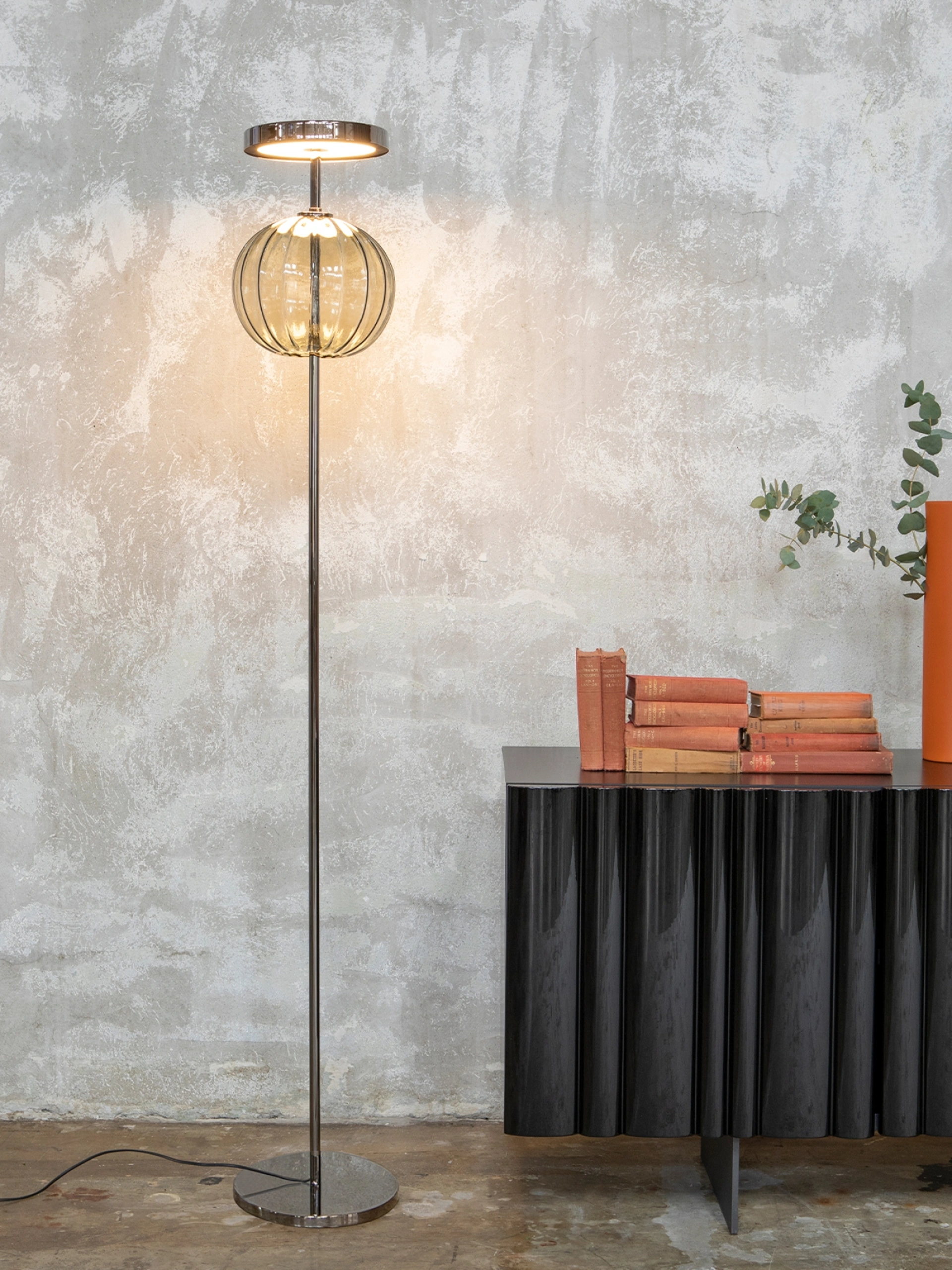 La lampada Pagoda da terra di Tonin Casa è un elemento di design caratterizzato da volumi morbidi e arrotondati, concepiti per generare un'illuminazione d'ambiente suggestiva e finemente modulata. La sua versatilità di posizionamento, a diverse altezze e distanze, permette di ottimizzare l'impatto visivo, integrandosi armonicamente in ogni contesto. La configurazione da terra è dotata di una base stabile in metallo con finitura cromo lucido e di un diffusore in vetro soffiato, offerto nelle tonalità fumé o ambra, per un'adattabilità estetica e funzionale. La progettazione di questo arredo luminoso è focalizzata sulla longevità dei materiali e sull'efficienza del sistema illuminante, assicurando prestazioni costanti nel tempo.