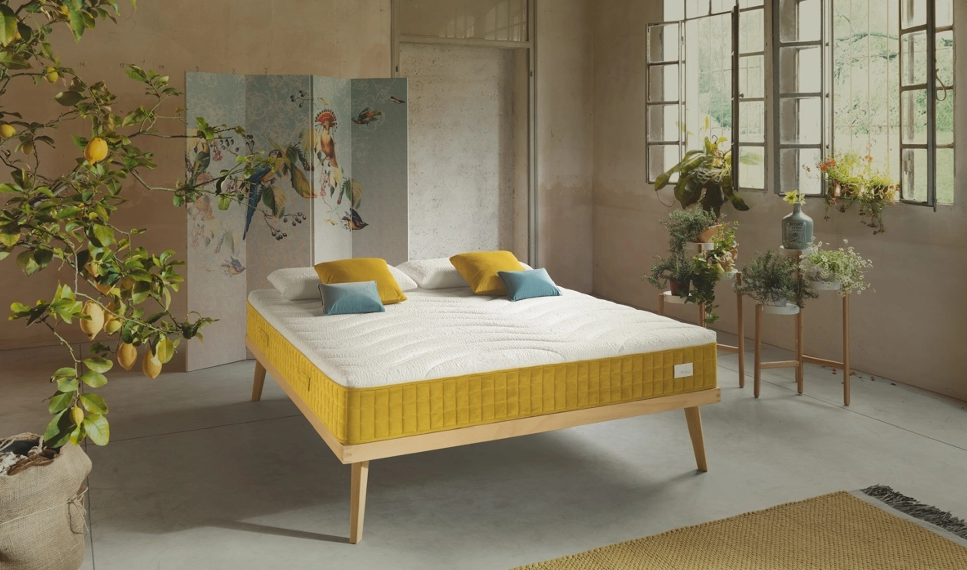 | Materiale: | Schiumato naturale Grand Soleil (a base di olio di girasole e acqua), rivestimenti in fibre naturali (Tencel®, cotone, bamboo, bioceramica). |