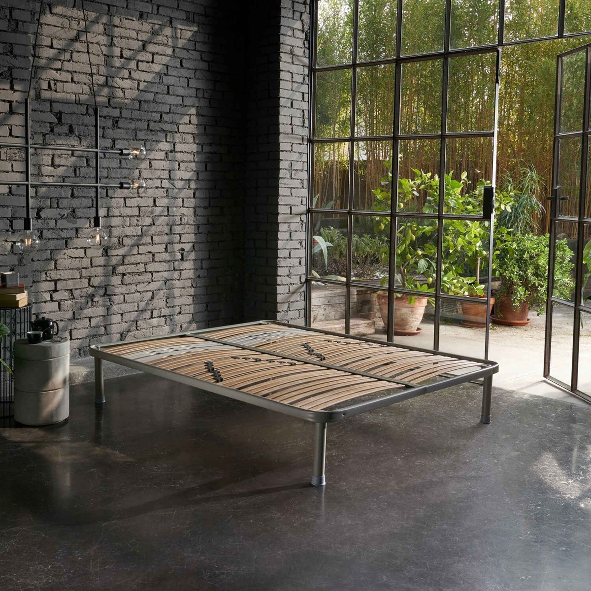 | Materiale: | Telaio in profilato d'acciaio, doghe in legno |