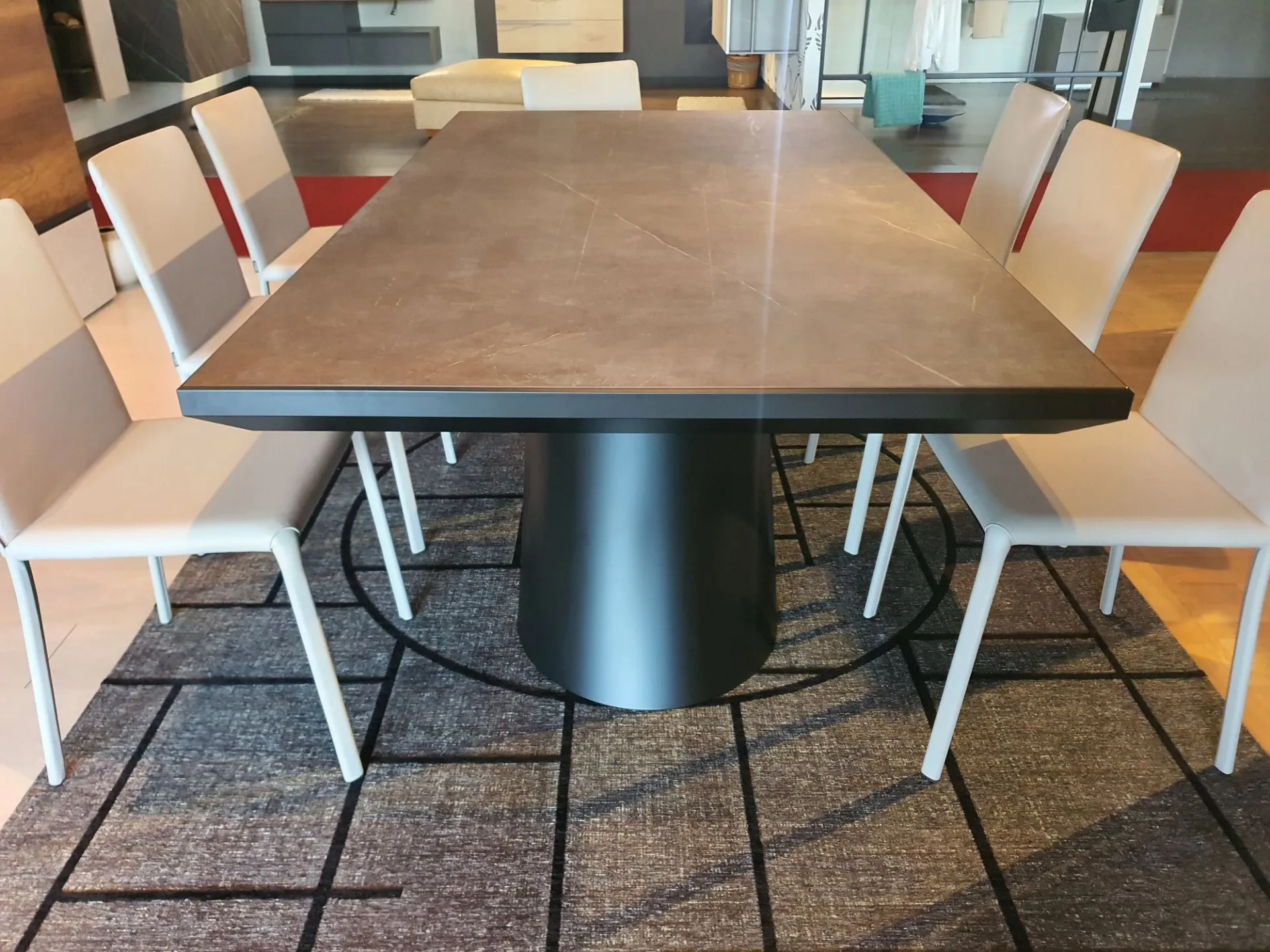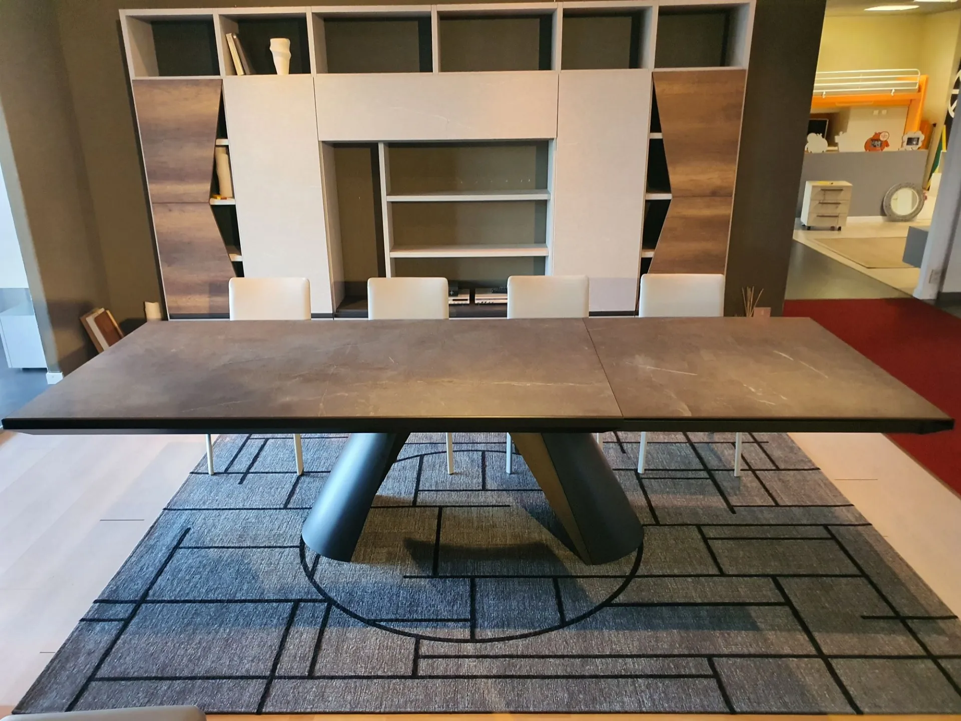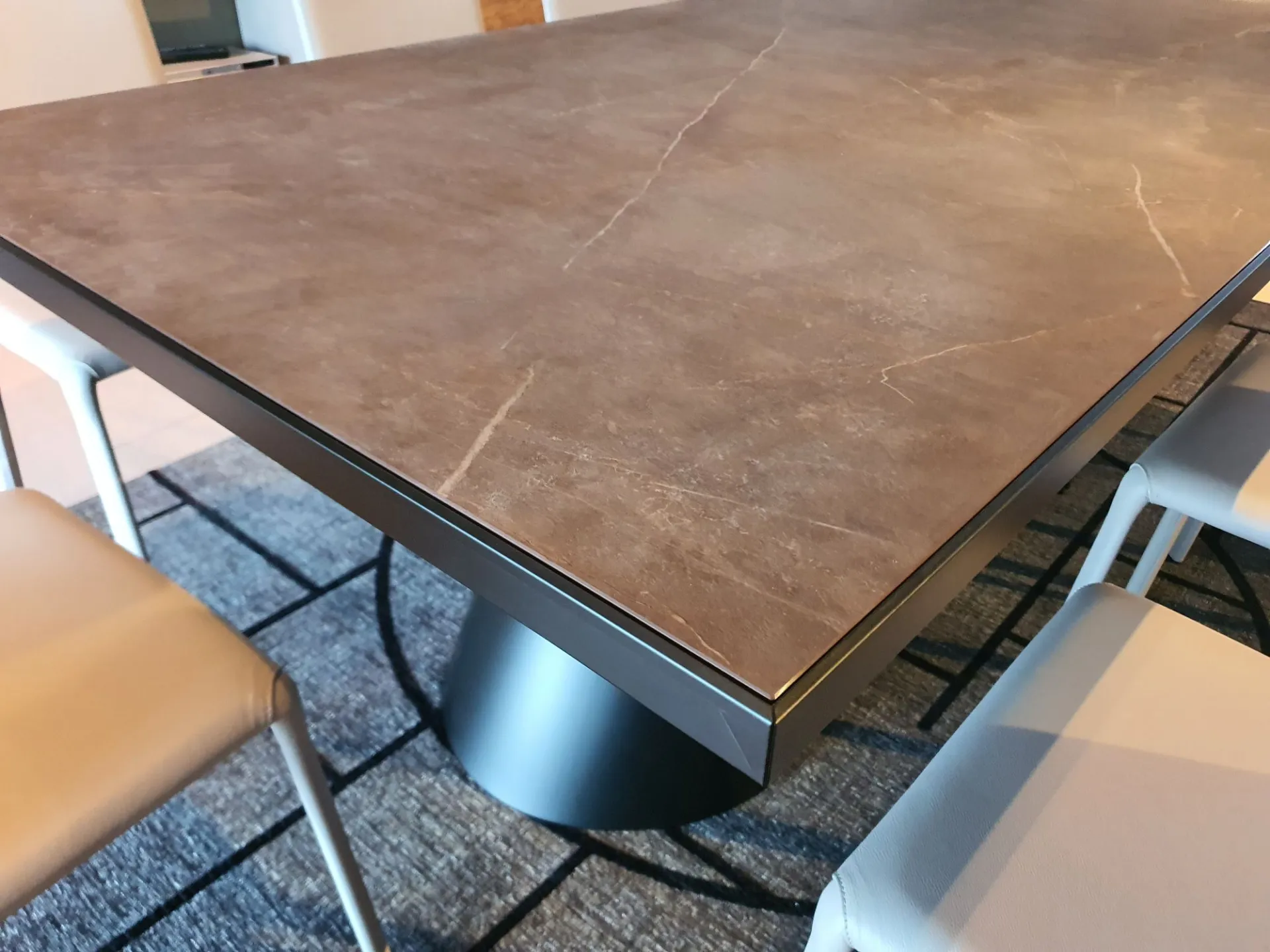 CHIUSURA ACCIDENTALE, gambe lato esterno P15 nero e lato interno P29L bronzo opaco, piano in ceramica Bronze P14C con cassonetto nero opaco P15, cm. 200(300)x110