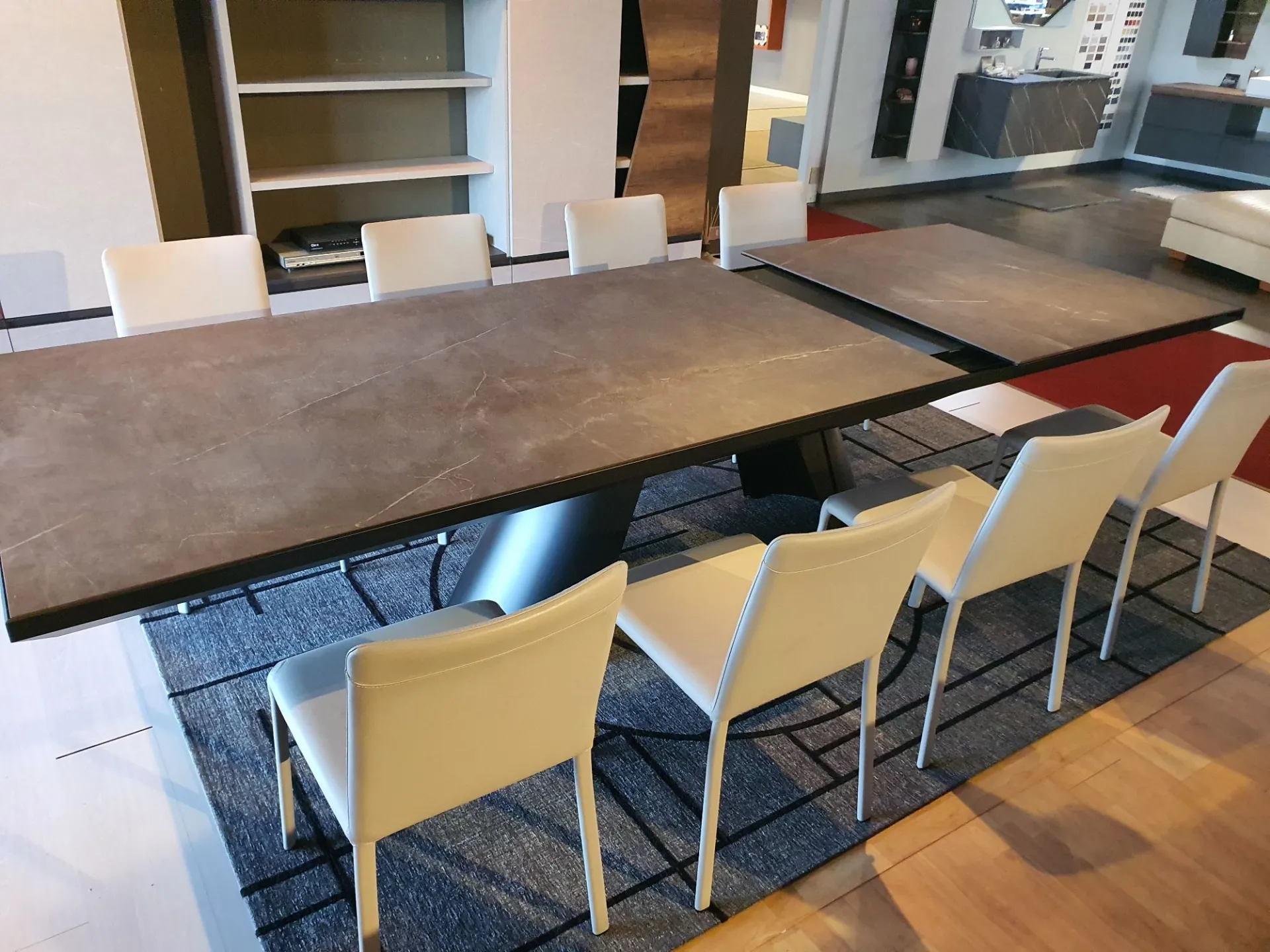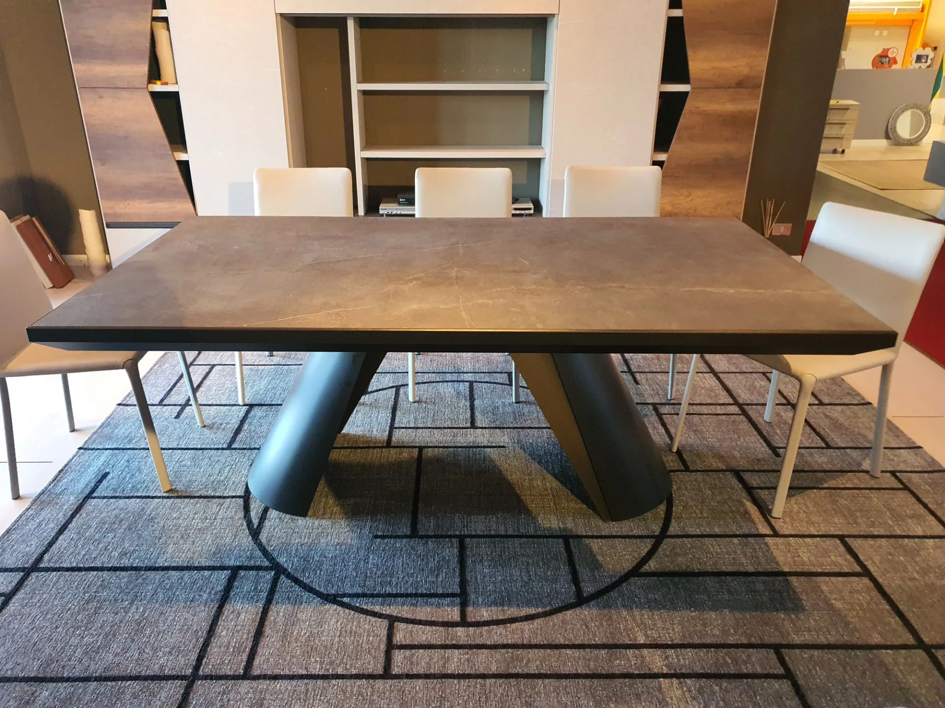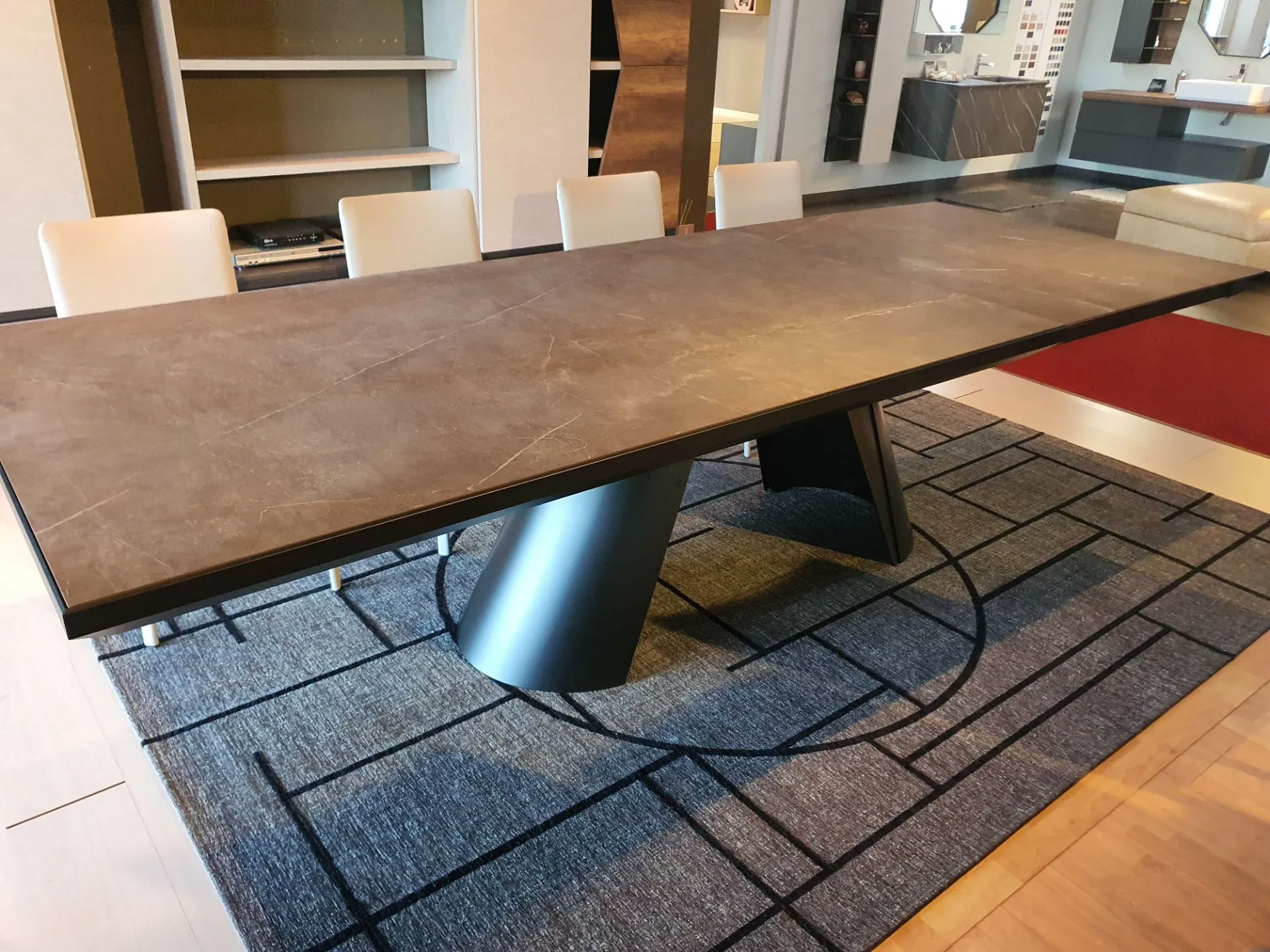 CHIUSURA ACCIDENTALE, gambe lato esterno P15 nero e lato interno P29L bronzo opaco, piano in ceramica Bronze P14C con cassonetto nero opaco P15, cm. 200(300)x110