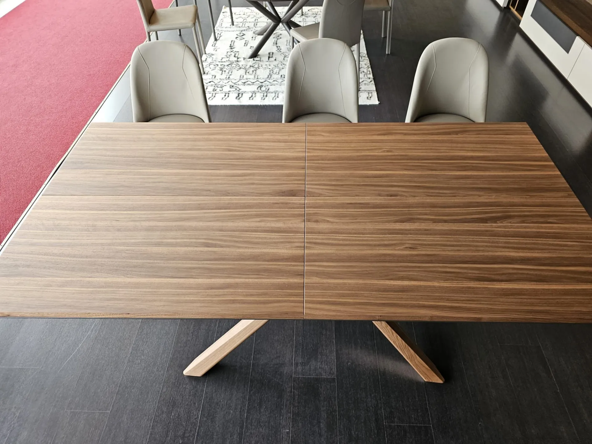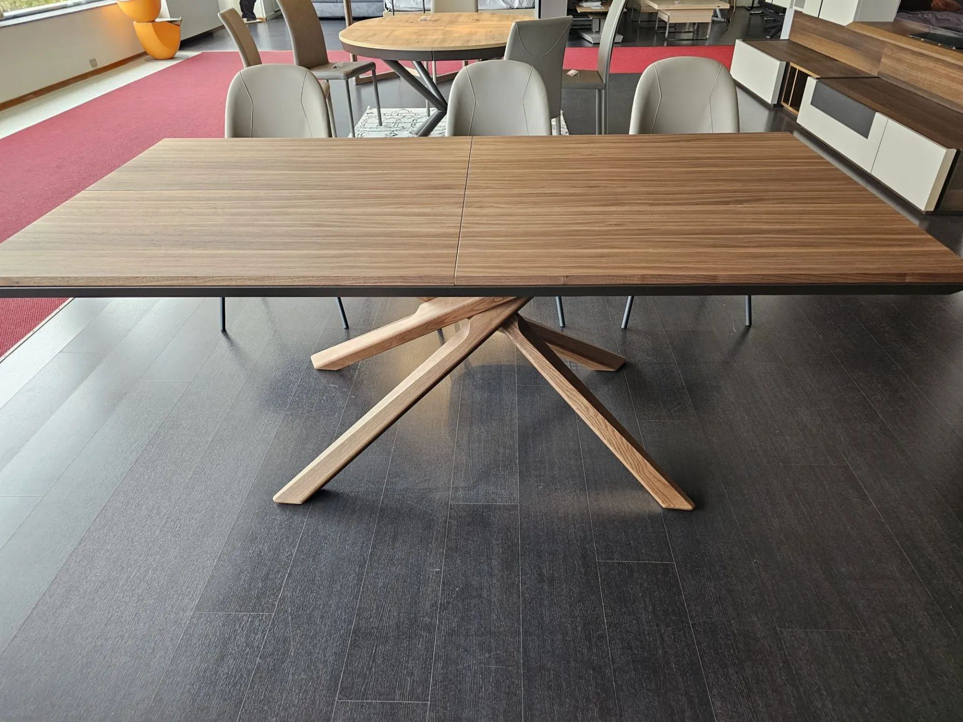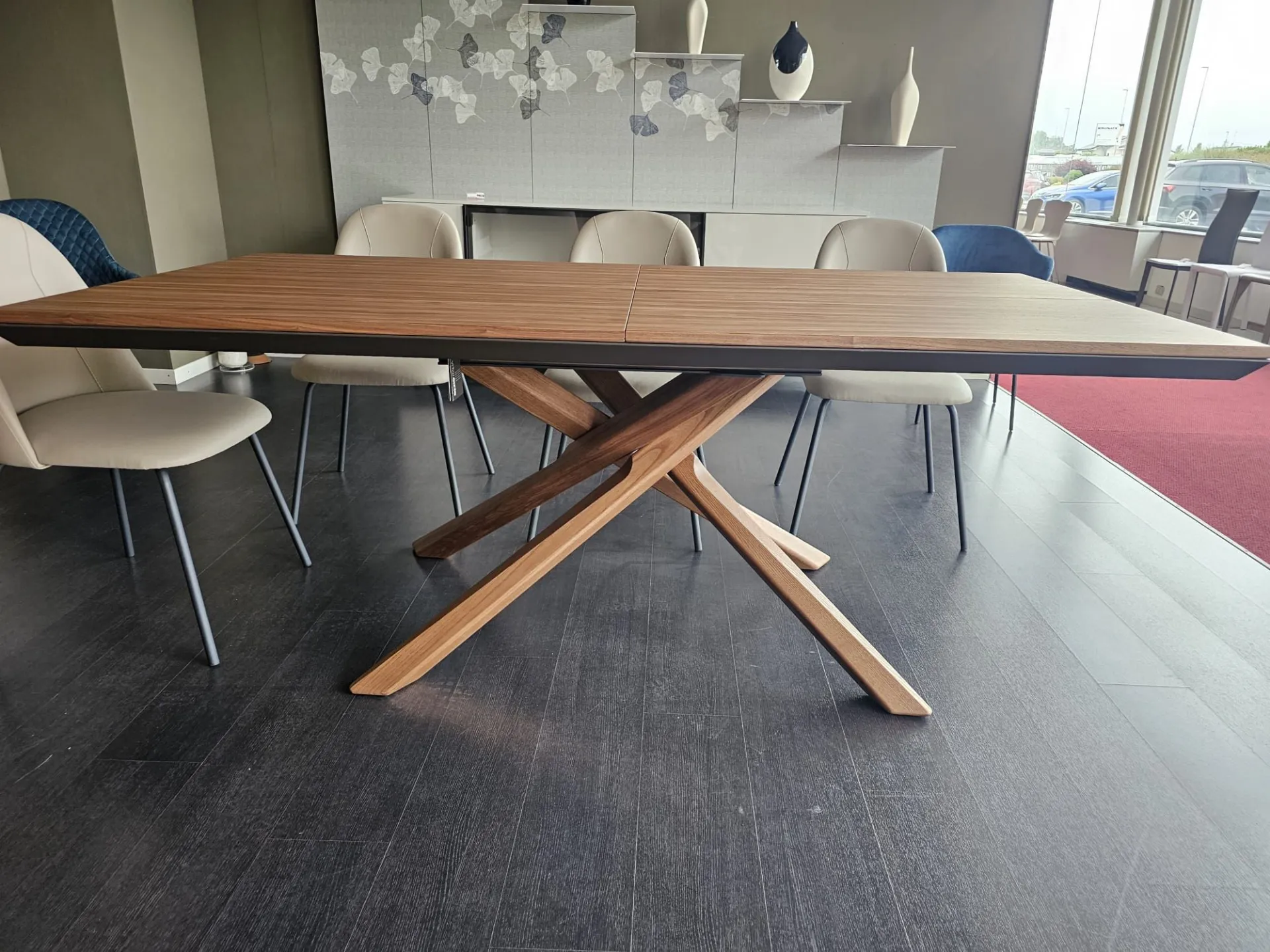 Tavolo allungabile mod.ARIZONA di misura cm L.200(254)x100(138) con piano e basamento in legno vero finitura Noce Canaletto PZ51 e telaio in metallo verniciato Bronzo MT97