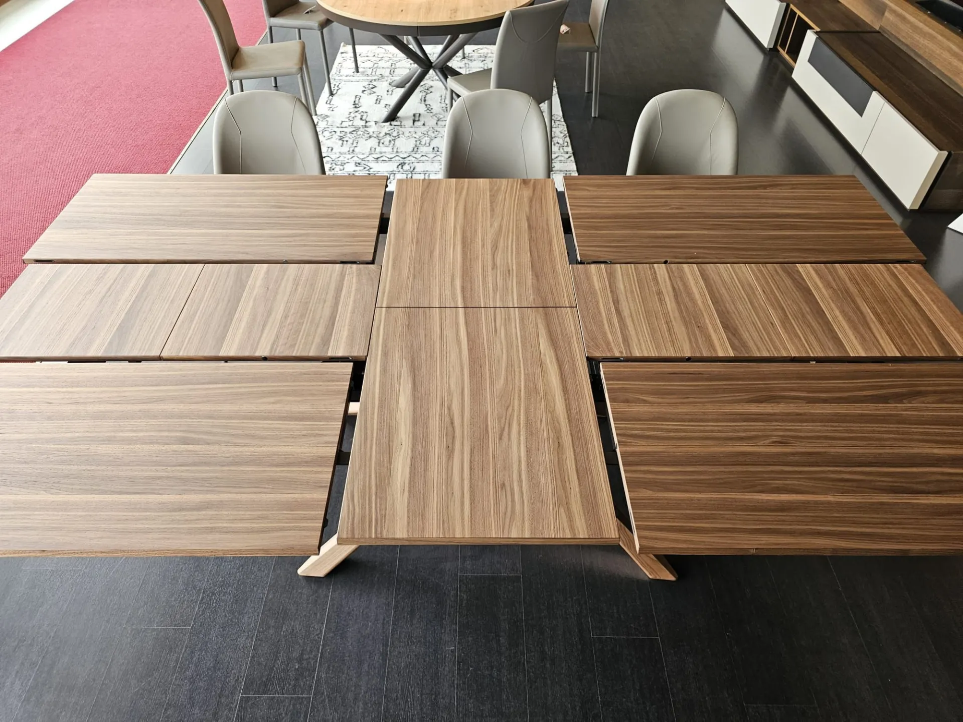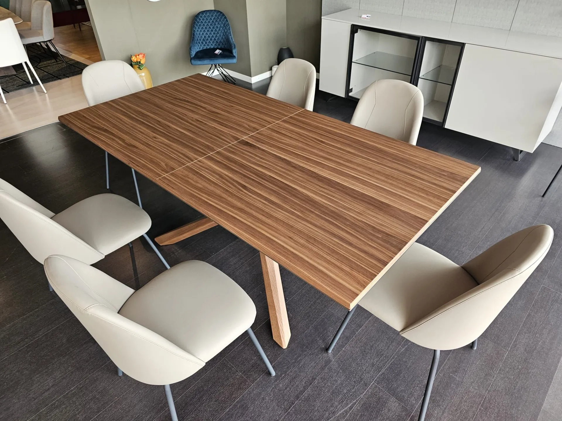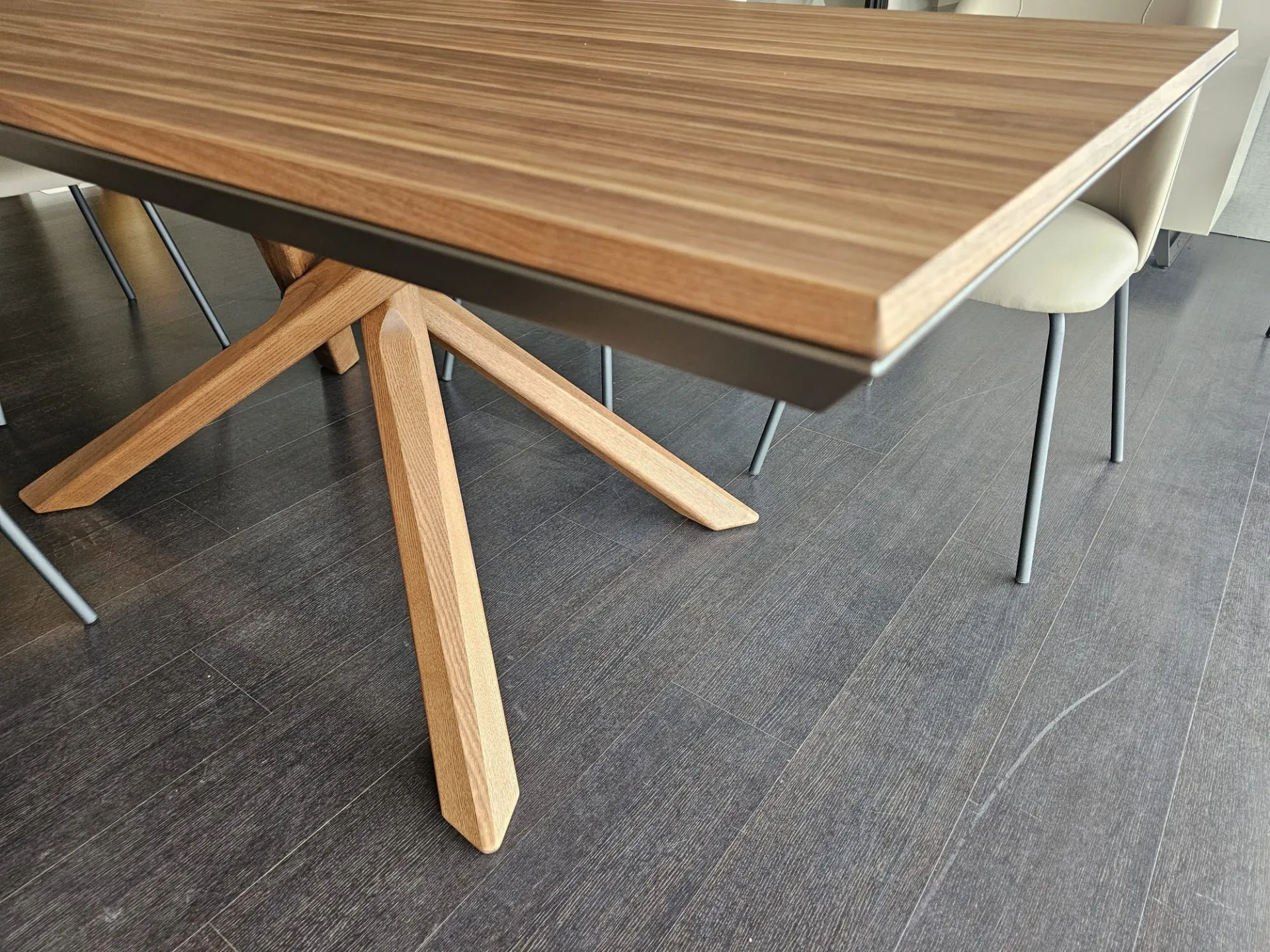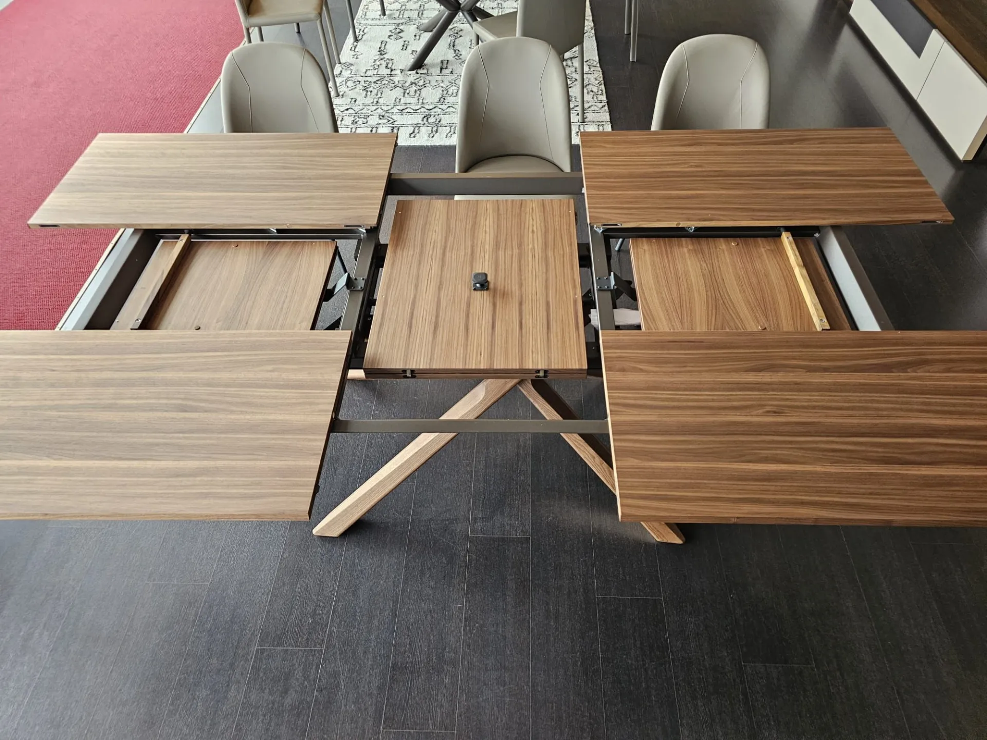 Tavolo allungabile mod.ARIZONA di misura cm L.200(254)x100(138) con piano e basamento in legno vero finitura Noce Canaletto PZ51 e telaio in metallo verniciato Bronzo MT97