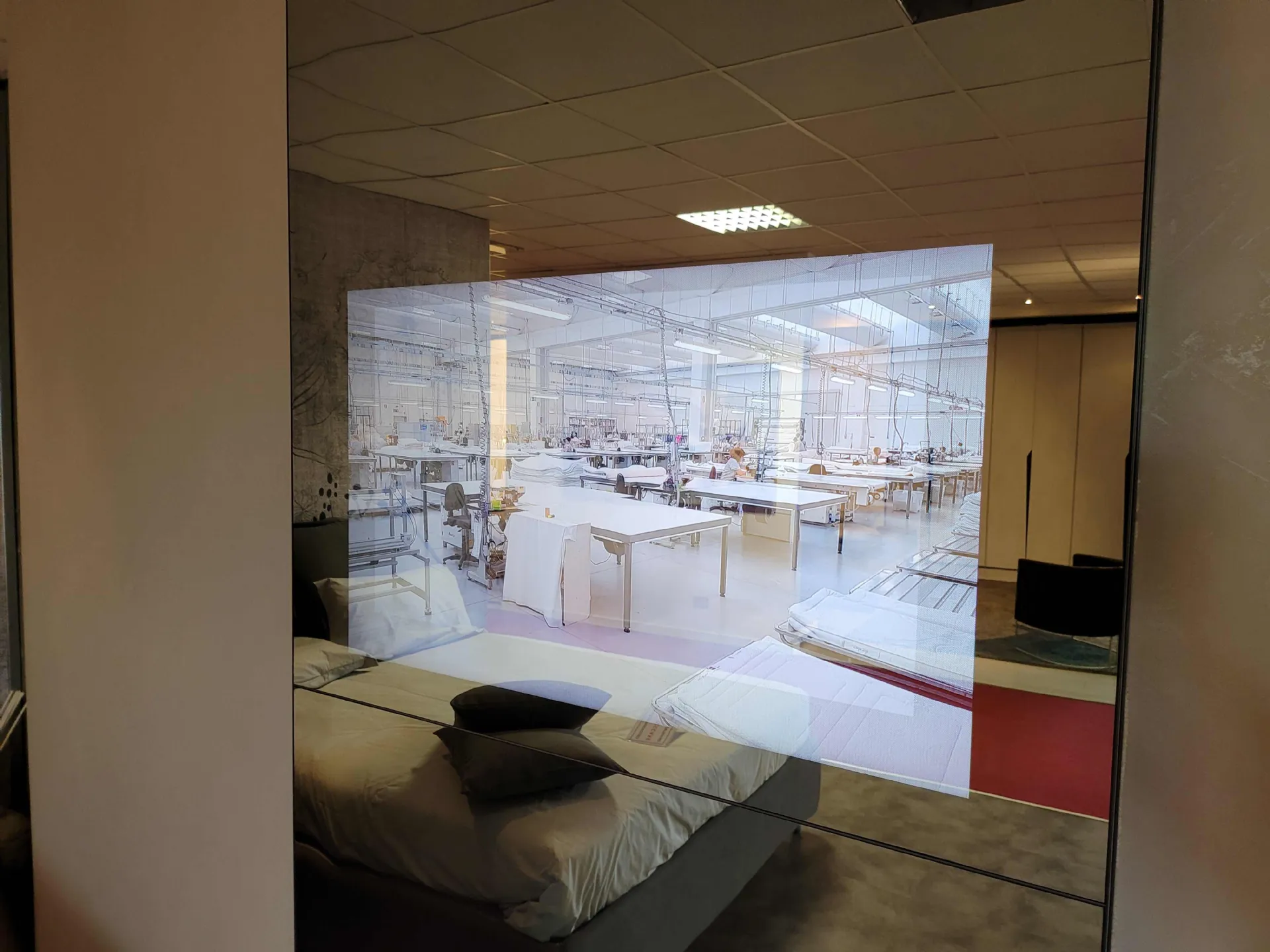 L’armadio con anta Vision può incorporare, in una speciale anta realizzata con una tipologia di vetro di ultima generazione, uno schermo televisivo ad alta definizione. Il risultato? Un mobile che funge da “entertainment center” e permette di unire funzionalità con design d’eccellenza. Per evitare qualsiasi effetto antiestetico, l’anta Vision mantiene celati i fili del televisore mediante un meccanismo integrato di trascinamento cavi. Quest’ultimo è progettato per permettere all’anta di scorrere senza intoppi anche una volta che lo schermo risulta acceso.