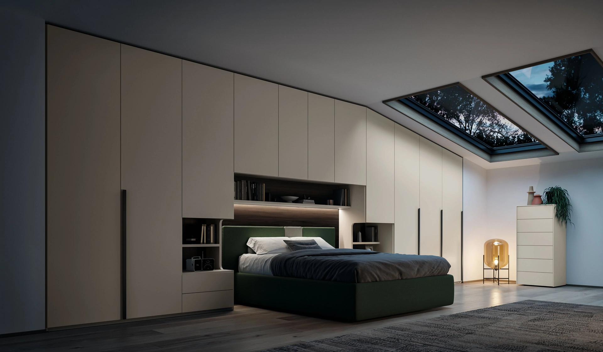 Armadio con ante battenti per spazi moderni modello Ardecò Axel Madreperla: scopri le soluzioni per mansarde per la camera da letto