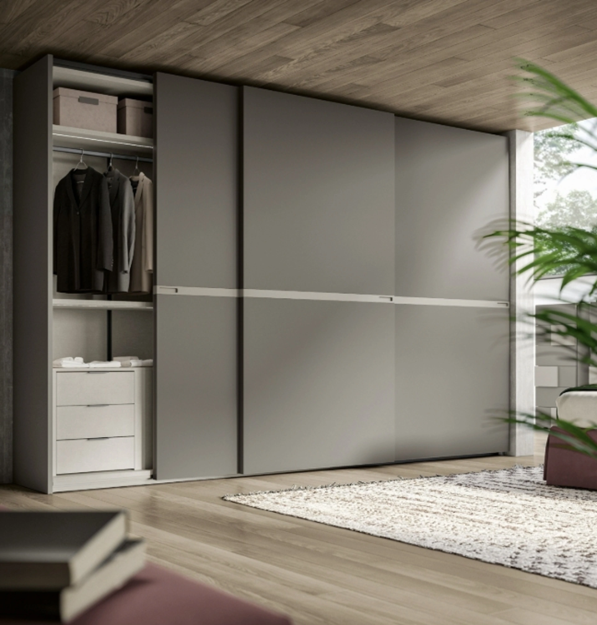 Modello Ardecò Forte Max Fango con ante scorrevoli in laccato opaco pensato per una zona notte dai richiami moderni: scopri le soluzioni a muro