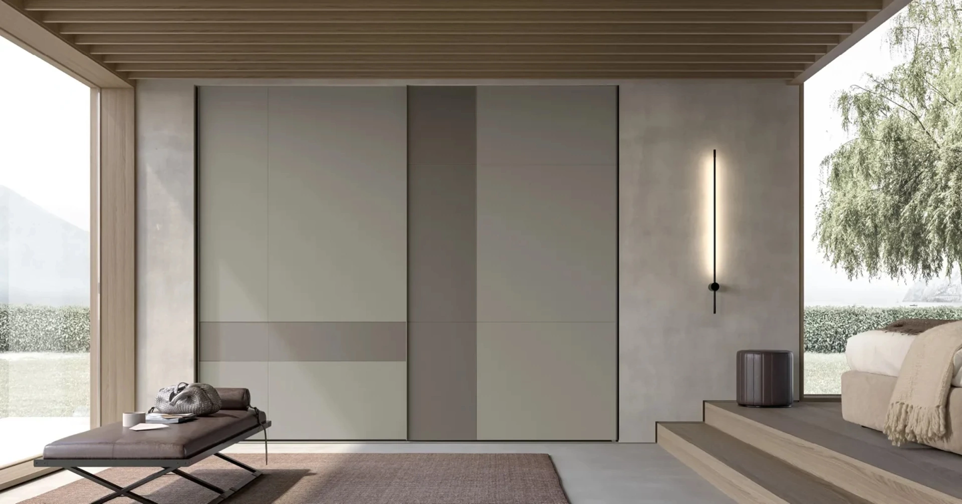 Modello Atelier con ante scorrevoli Mondrian con ante scorrevoli in laccato opaco perfetto per una camera da letto dai richiami moderni: scopri le soluzioni a muro