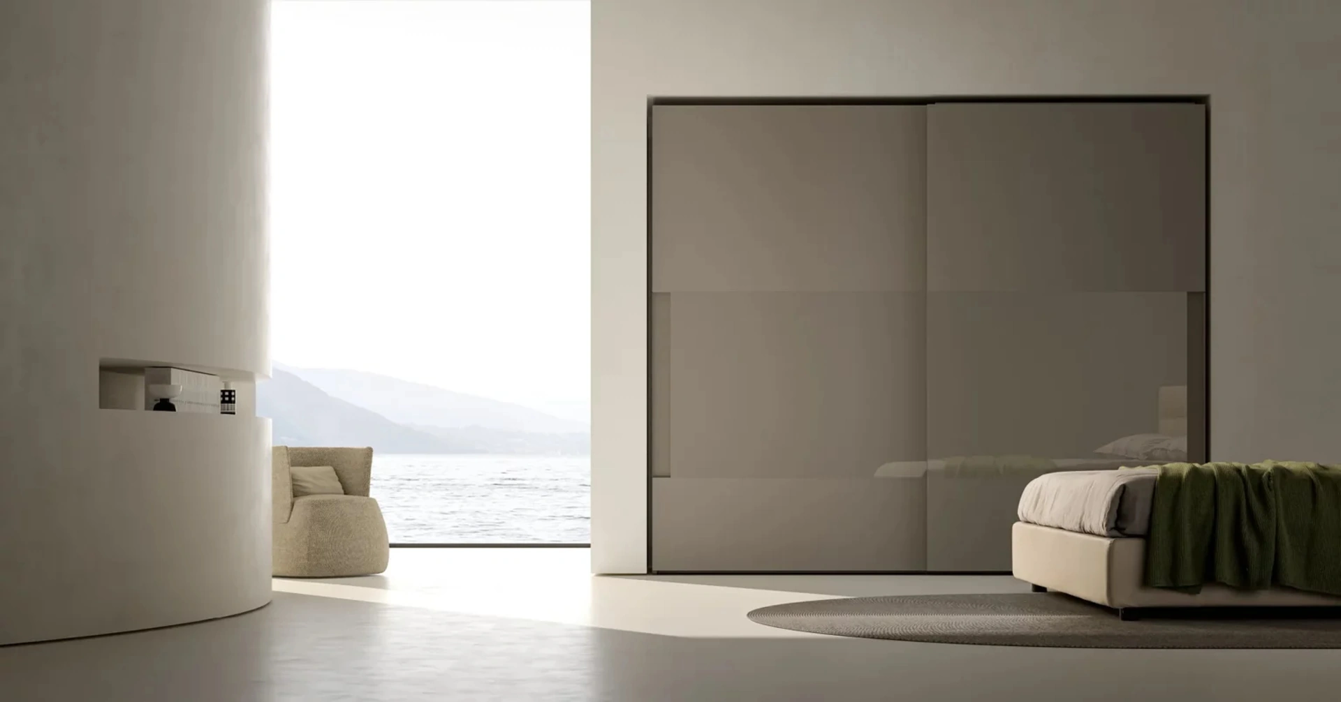 Armadio con ante scorrevoli per spazi moderni modello Atelier con ante scorrevoli Shine: scopri le soluzioni a muro per la zona notte