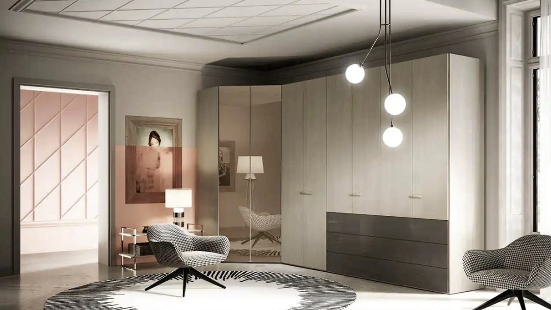 Armadio con ante battenti per spazi moderni modello Levante e Libeccio U461: scopri le soluzioni ad angolo per la zona notte