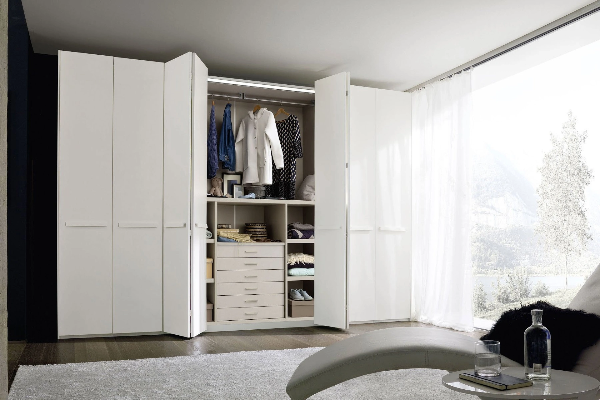 Modello Quadro soffietto con ante a soffietto in melaminico ideale per una zona notte dai richiami moderni: scopri le soluzioni a muro