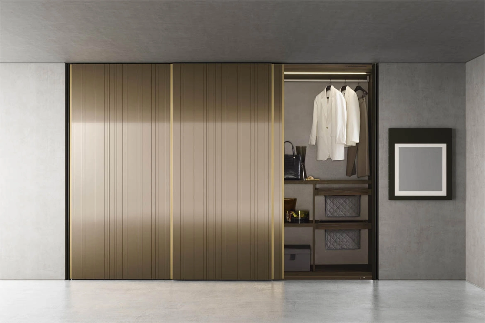 Armadio con ante scorrevoli a specchio finitura Bronzo Raggio di Pianca