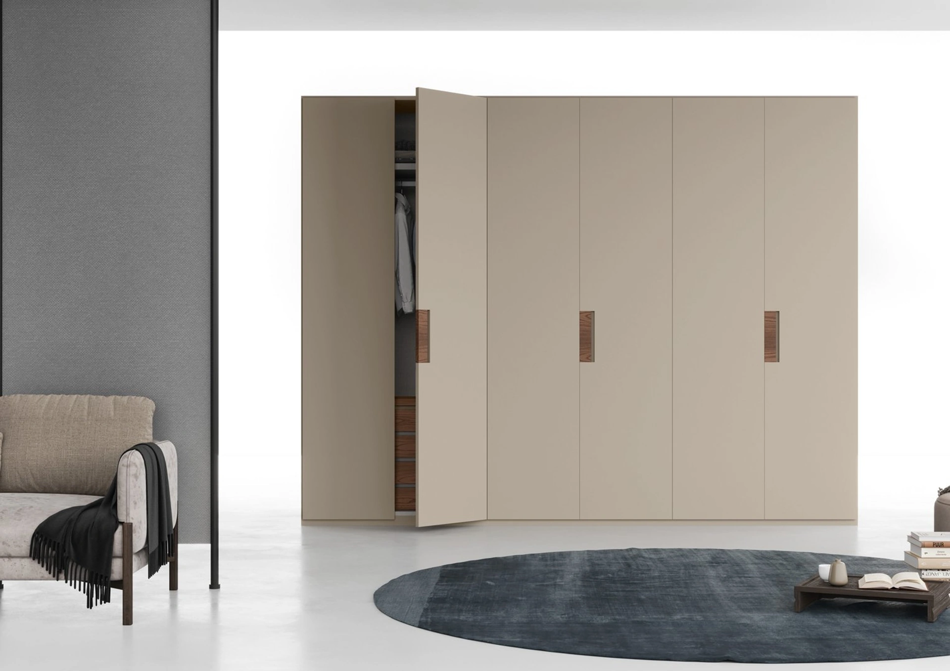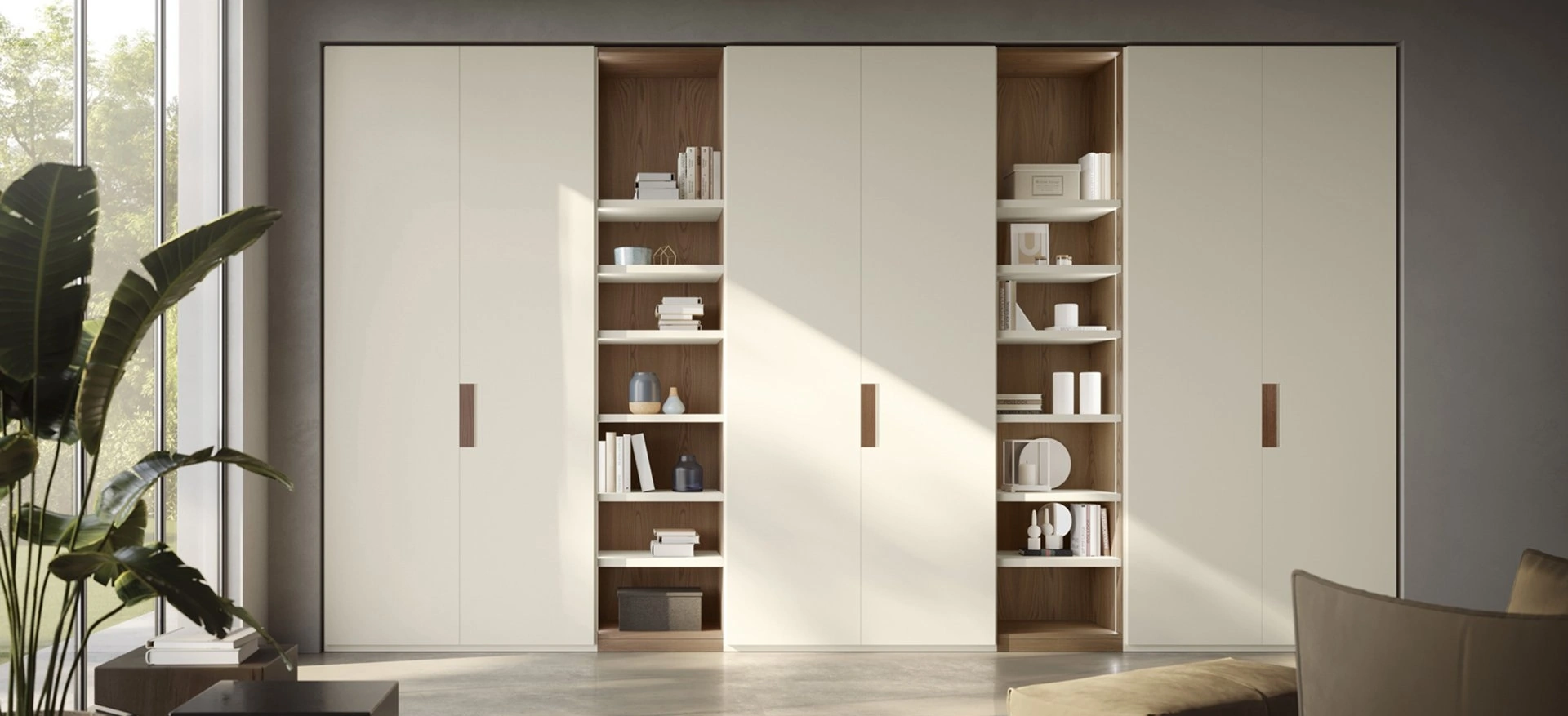 Gli Armadi a muro con ante battenti di Fimar ti attendono: scopri il modello Segno battente nell'immagine