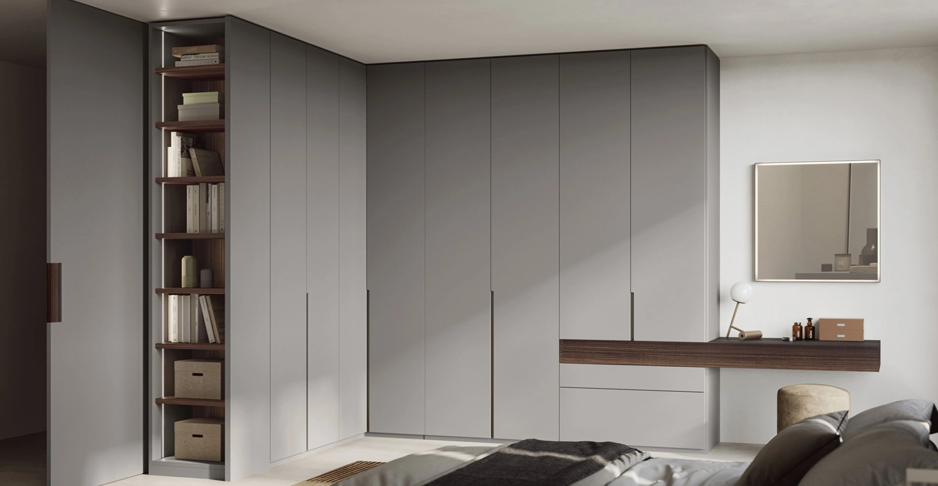 Gli Armadi ad angolo con ante battenti di Fimar ti aspettano: scopri il modello Tratto in foto