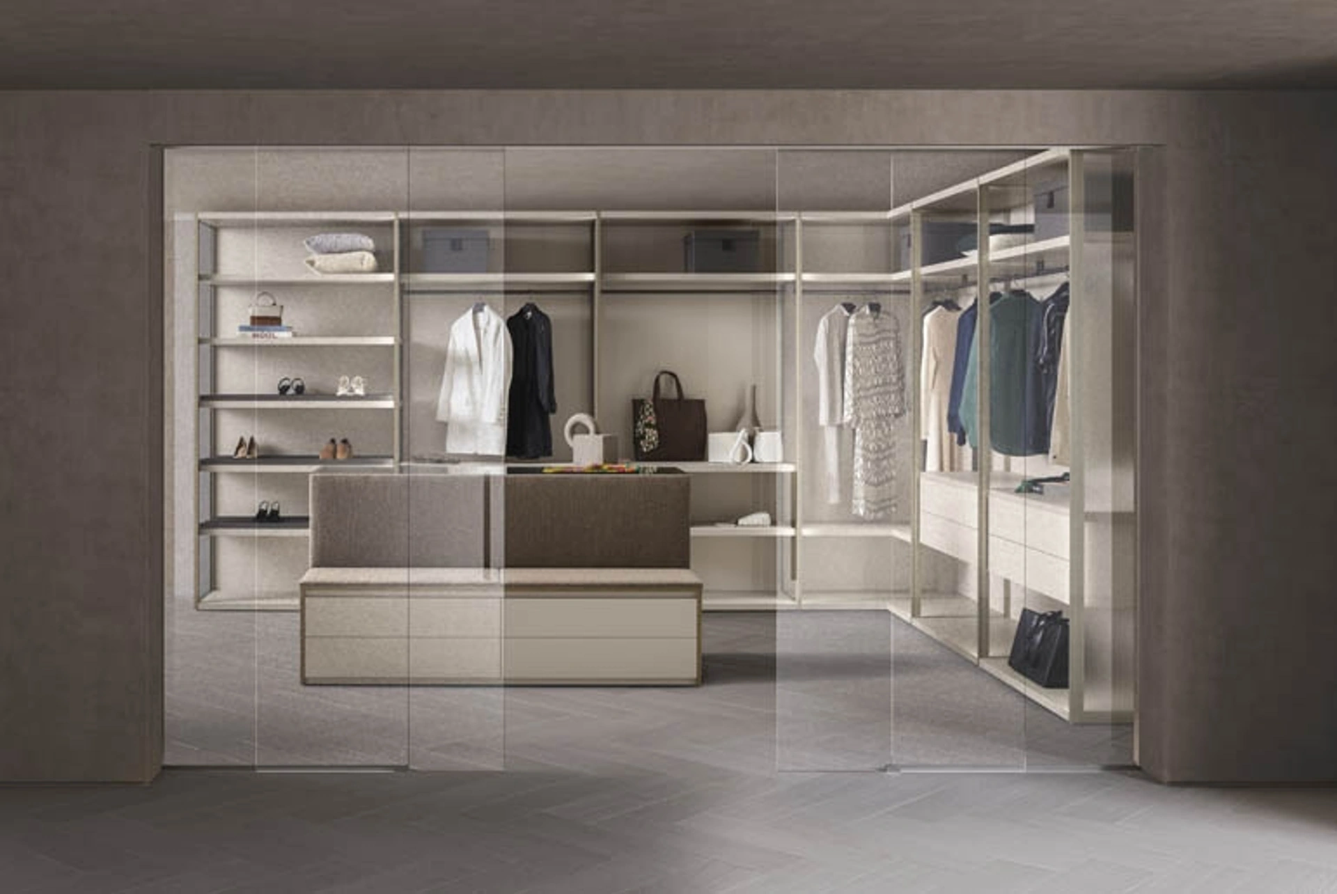 La cabina armadio Vista, firmata Pianca, rappresenta una soluzione d'arredo all'avanguardia, pensata per arricchire con discrezione e funzionalità gli spazi notte. Il suo design intelligente si integra perfettamente, offrendo un'eleganza quasi invisibile. Questo sistema si distingue per la sua purezza formale, la notevole leggerezza strutturale e una modularità studiata al centimetro, unendo estetica e adattabilità. Un tratto distintivo è l'innovativa concezione senza telai, disponibile sia per le ante in legno che in vetro, che conferisce un aspetto estremamente pulito. Le configurazioni delle ante includono opzioni con binario singolo o doppio, con possibilità di fissaggio a parete, soffitto o integrazione a scomparsa per un'armonia visiva totale. All'interno, gli schienali retroilluminati creano un'atmosfera suggestiva, mentre i cristalli 'Stoplux' offrono la possibilità di regolare la trasparenza. Funzionalità aggiuntive comprendono l'integrazione discreta di un televisore LCD nel telaio scorrevole, visibile solo quando in uso. La vasta palette di finiture, che spazia dai laccati (metallico, opaco, lucido) alle essenze, dai materiali materici ai vetri (laccati o metallici) in tonalità esclusive come Oliva e Bosco, permette una personalizzazione approfondita per ogni esigenza progettuale. L'investimento in questa soluzione garantisce un prodotto di elevata fattura, ottimizzato per durabilità e prestazioni nel tempo.