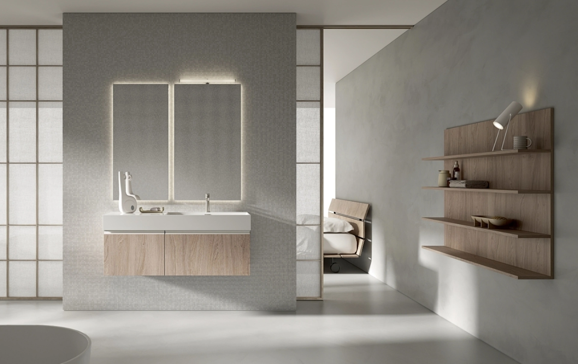 Il mobile bagno sospeso BIK BK02, una creazione distintiva di Compab, si caratterizza per la sua struttura in melaminico, materiale scelto per la sua resistenza e facilità di manutenzione. Questo elemento d'arredo è concepito per ottimizzare gli spazi del bagno moderno, coniugando estetica e funzionalità avanzate. Il design innovativo è esaltato da un'ampia palette di finiture e cromie, che spaziano dal Bianco lucido al Rovere RAW impiallacciato, includendo diverse laccature opache e lucide per una personalizzazione profonda. Ogni dettaglio dei prodotti Compab è curato per assicurare qualità e longevità, definendo un ambiente bagno all'avanguardia. L'eccellenza costruttiva e l'innovazione progettuale si fondono per garantire un'esperienza d'uso superiore e una durabilità intrinseca del prodotto.