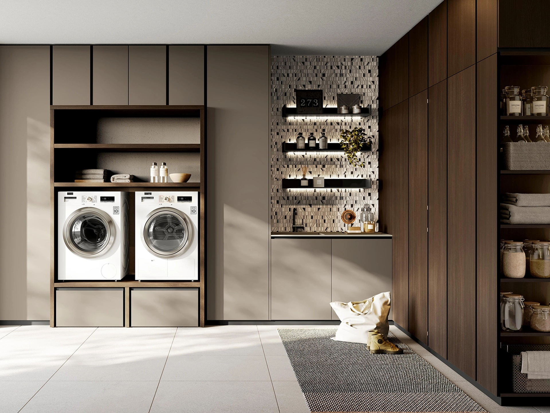 Il mobile contenitore Idrobox 01 di Birex, parte della collezione Idrobox, è una soluzione versatile e modulare per l'arredo lavanderia. Ideale per l'alloggiamento di lavatrice e asciugatrice, si distingue per la sua funzionalità avanzata e un design dall'estetica pulita. La composizione include un elemento a giorno con due vani e due cassettoni dotati di pratiche ruote per una movimentazione agevole. La struttura portante è realizzata con pannelli in fibre di legno di 4 cm di spessore, mentre i pannelli dei cassetti hanno uno spessore di 18 mm, garantendo robustezza. È possibile personalizzare l'elemento contenitore e i cassettoni scegliendo tra diverse finiture e colorazioni per adattarsi a ogni stile. Questa proposta d'arredo incarna la sintesi perfetta tra design innovativo e ottimizzazione degli spazi, pensata per durare nel tempo.