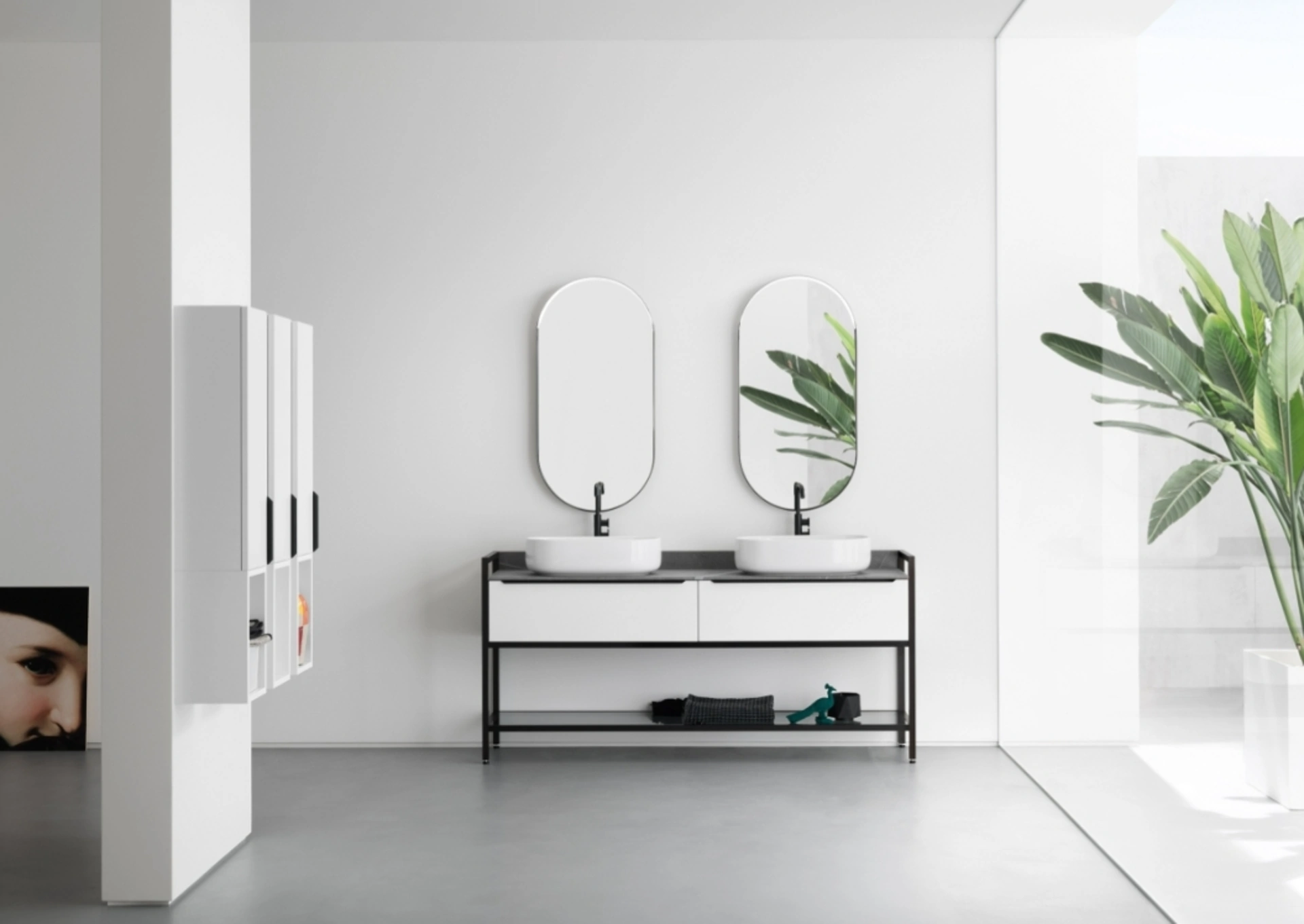 Il sistema d'arredo bagno B201 BD003 di Compab incarna l'essenza della collezione B201, distinguendosi per un'armoniosa fusione di volumi e linee essenziali. Il concept enfatizza l'equilibrio tra pieni e vuoti, conferendo agli elementi una purezza formale. La versatilità del prodotto è amplificata da un'ampia selezione di finiture, che spaziano dai nobilitati ai laccati (disponibili in opaco, lucido e sabbiato) fino agli impiallacciati, consentendo un'elevata personalizzazione estetica e funzionale. Il design meticoloso e la selezione di materiali di alta qualità garantiscono una durabilità eccezionale e un'estetica raffinata, assicurando una soluzione d'arredo che permane nel tempo.