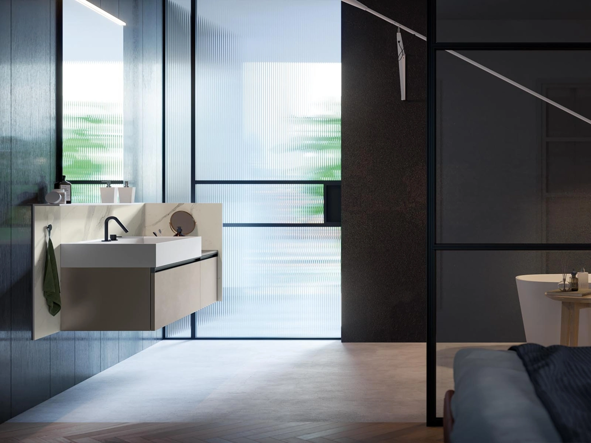 Scopri la nostra linea di Arredo Bagno moderno e mobili bagno sospesi in laccato opaco, come il modello Deep 01
