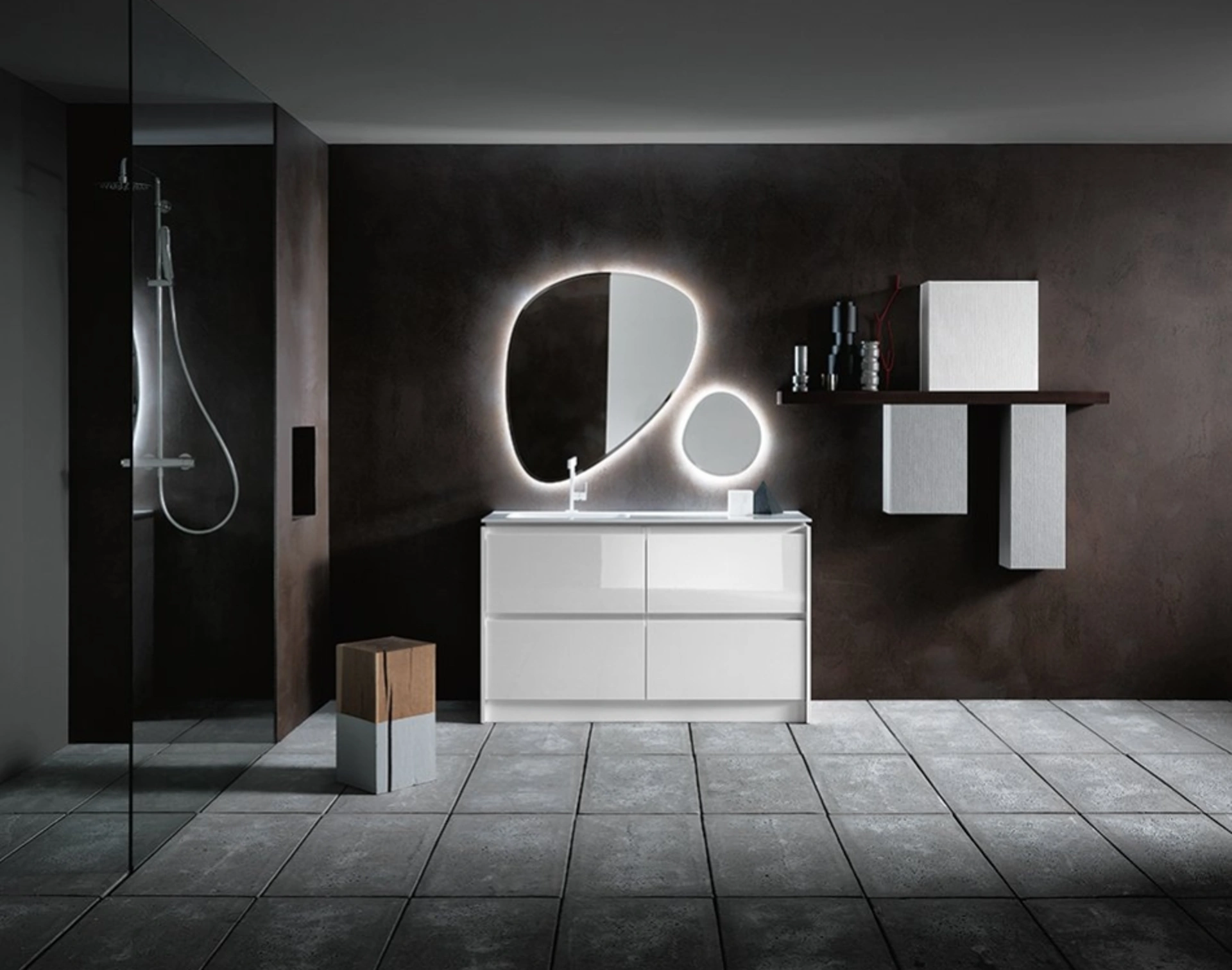 Arredo Bagno Compab: scopri una ricca gamma di mobili bagno da appoggio in laccato lucido, tra cui il modello INK NK09