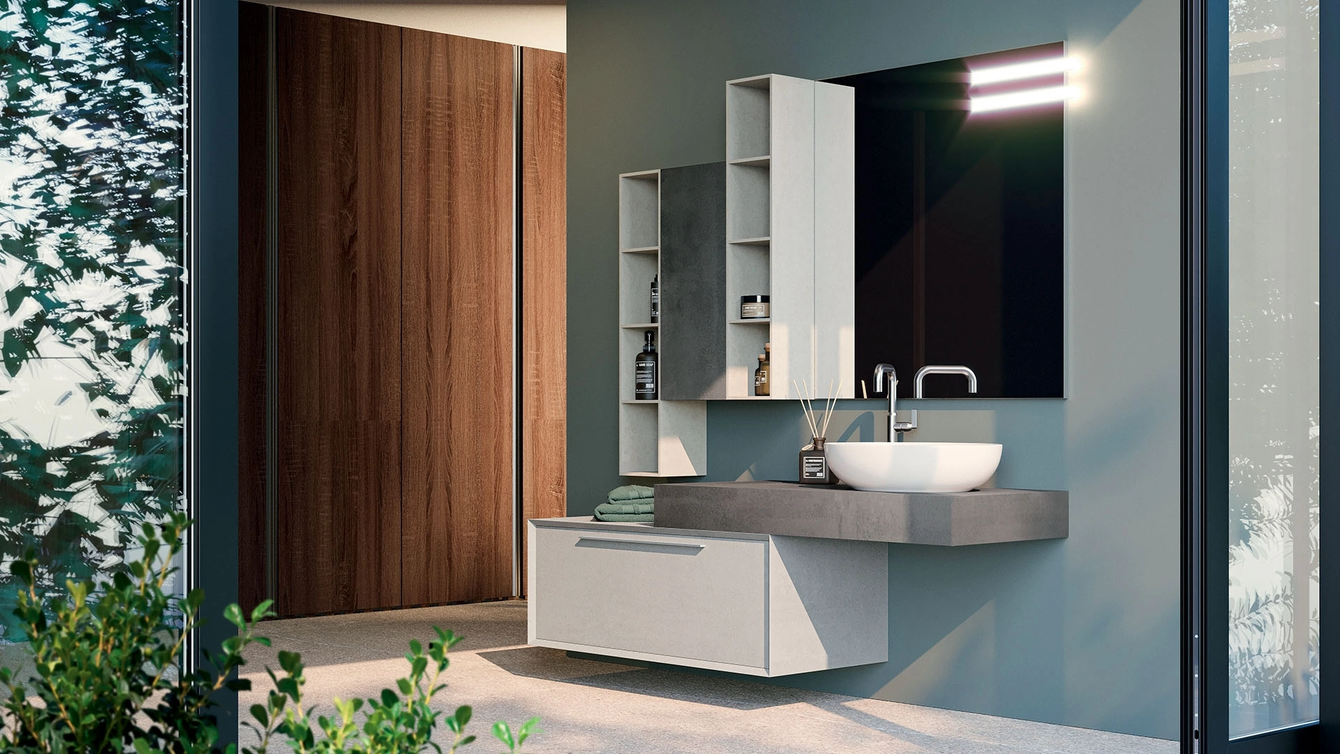 Scopri la nostra serie di Arredo Bagno design e mobili bagno sospesi in melaminico, come il modello Q45 11