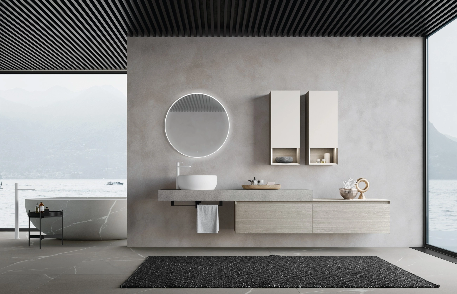 Valorizza il tuo ambiente bagno con il sistema M3 System 316 di Baxar, una soluzione che coniuga armoniosamente estetica e praticità, con un'ampia scelta di finiture come laccati opachi e Dekorativo Castagno chiaro. Siamo orgogliosi di offrire un servizio completo che include progettazione su misura, consegna efficiente e montaggio professionale in diverse località, coprendo aree come Tradate, Saronno, Rho, per assicurarti un'esperienza d'acquisto senza pensieri. Questo sistema modulare, arricchito da dettagli come la specchiera Eclisse con LED e interruttore touch e l'attrezzatura interna in metallo Grigio Stone con fondo effetto pelle, è progettato per adattarsi perfettamente ai tuoi spazi. Il lavabo Dream 04 in ceramica bianca opaca (Ø48 cm), integrato nel top di 13 cm in Deimos Stone Grigio Cemento, è un esempio della cura per i dettagli che mettiamo a tua disposizione. La nostra priorità è la tua serenità: garantiamo un'assistenza post-vendita completa e la disponibilità di ricambi per tutti i prodotti Baxar, assicurando valore e supporto nel tempo.