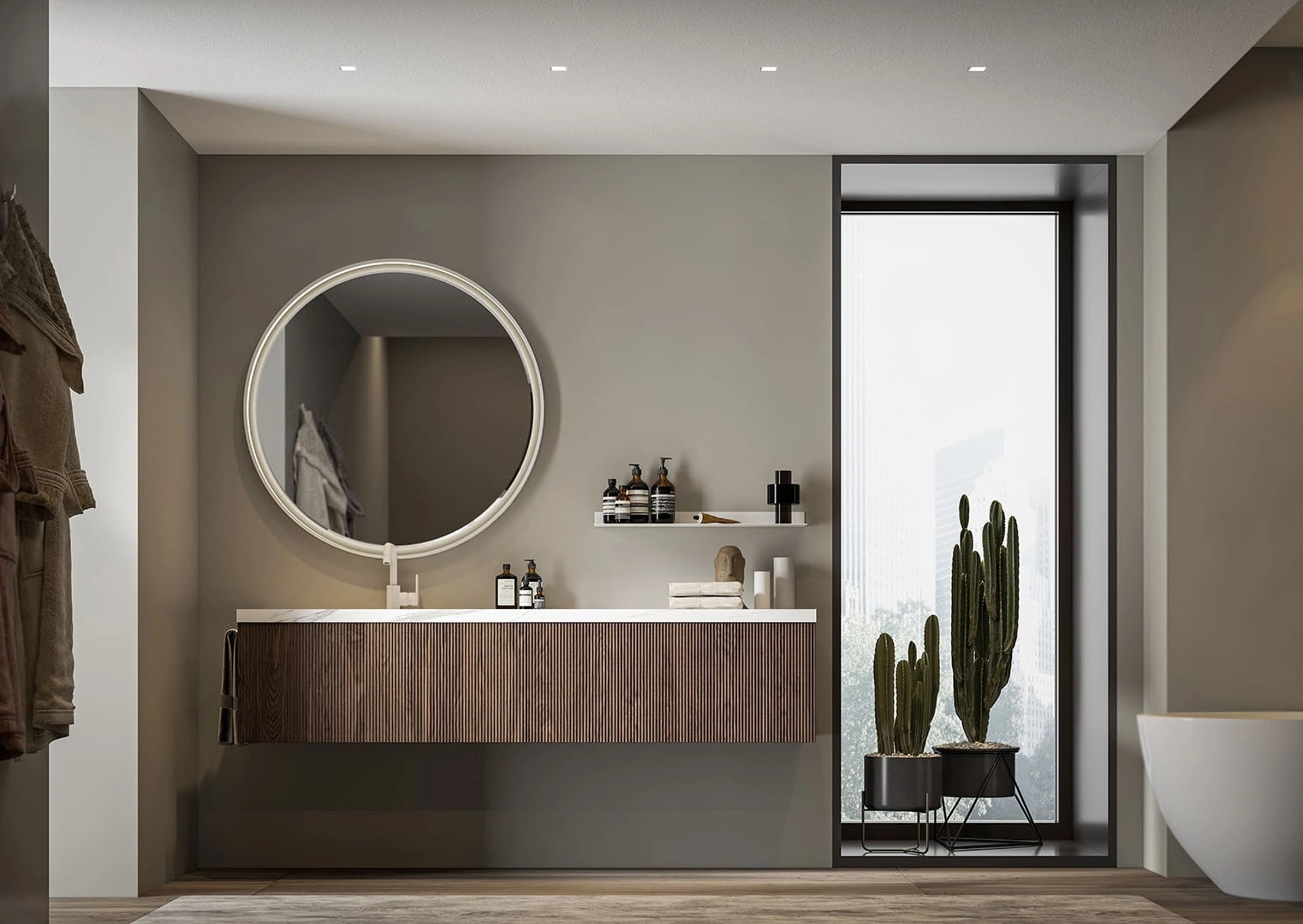 Il modello Myra 05, fiore all'occhiello della collezione Myra di Licor Design, è stato concepito per infondere un'atmosfera distintiva e contemporanea nell'ambiente bagno. La sua estetica raffinata si manifesta attraverso l'utilizzo di frontali 'fineline' in essenza noce canaletto, abbinati a strutture dalle superfici lisce, disponibili in diverse essenze o finiture laccate opache. L'armonia delle linee verticali non solo esalta il design, ma rende le composizioni estremamente versatili, adatte a integrarsi con eleganza sia in contesti neoclassici che in ambienti più moderni. Questa proposta rappresenta una soluzione d'arredo di alta qualità, curata nei minimi dettagli e nelle finiture specifiche. Per un'analisi approfondita delle specifiche tecniche e delle opzioni di personalizzazione, è possibile consultare la documentazione di prodotto o richiedere un confronto con i nostri esperti.