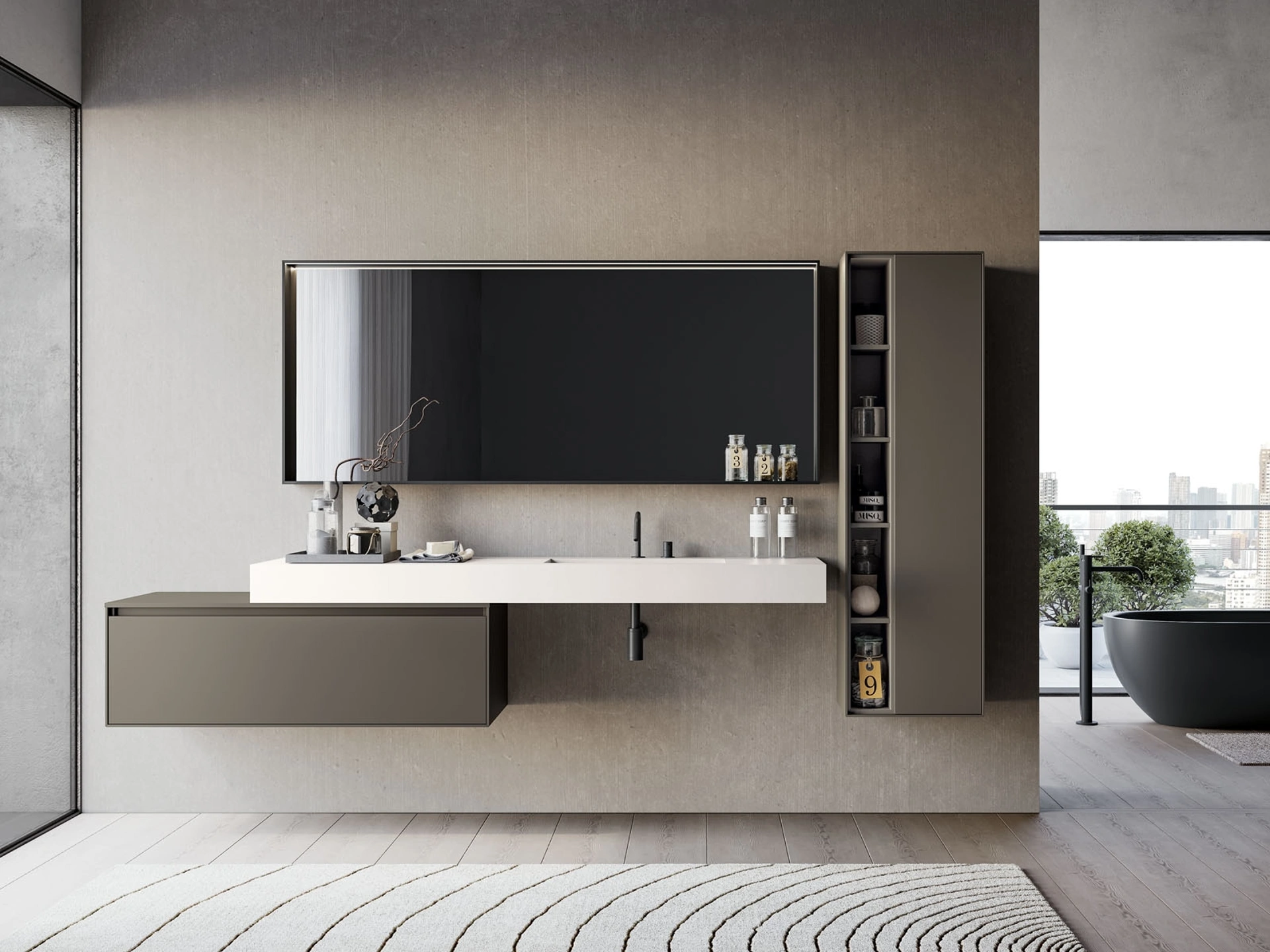 Scopri la nostra collezione di Arredo Bagno moderno e mobili bagno sospesi in laccato opaco, come il modello Traccia 01