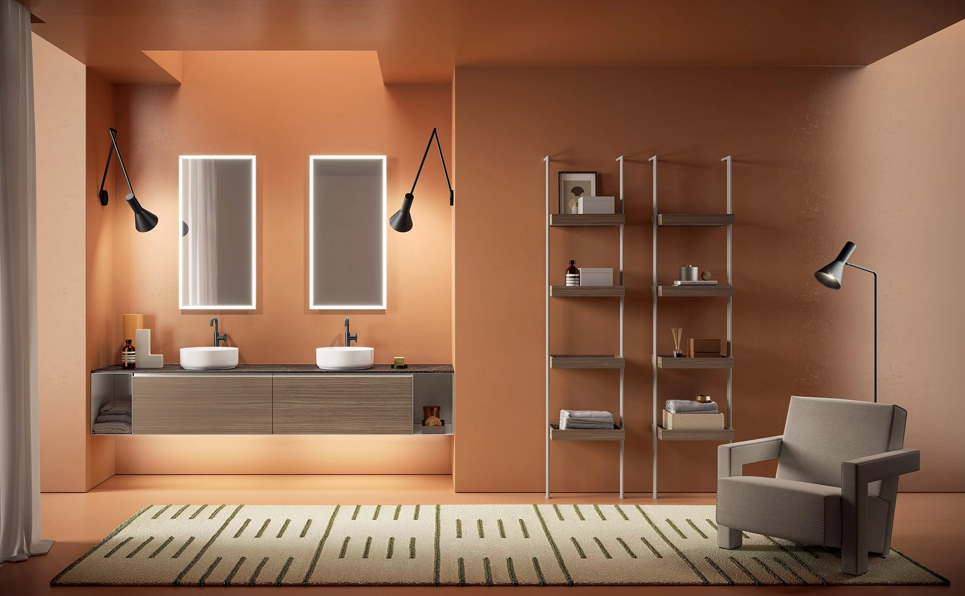 Scopri la nostra linea di Arredo Bagno moderno e mobili bagno sospesi in melaminico, come il modello Yang 14