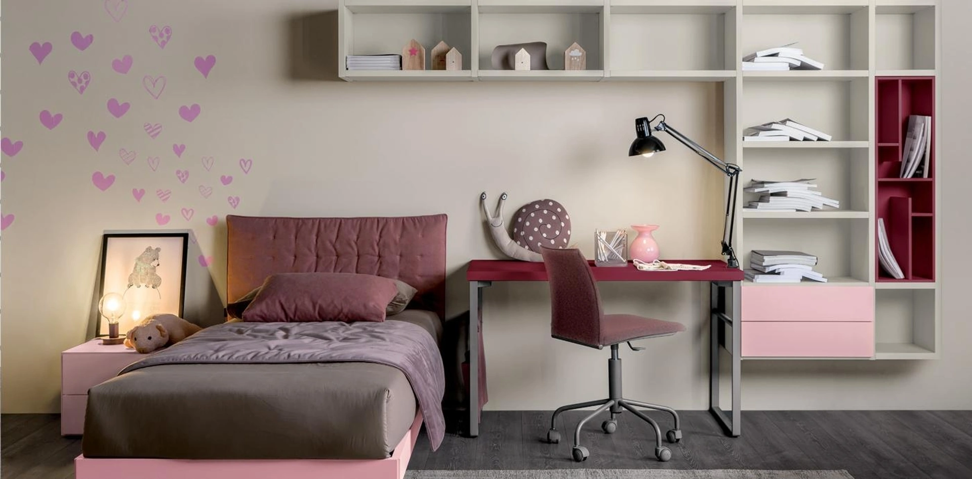 Scopri il modello Comp 703 e tutte le altre Camerette su misura moderne per bambine di Spagnol Mobili