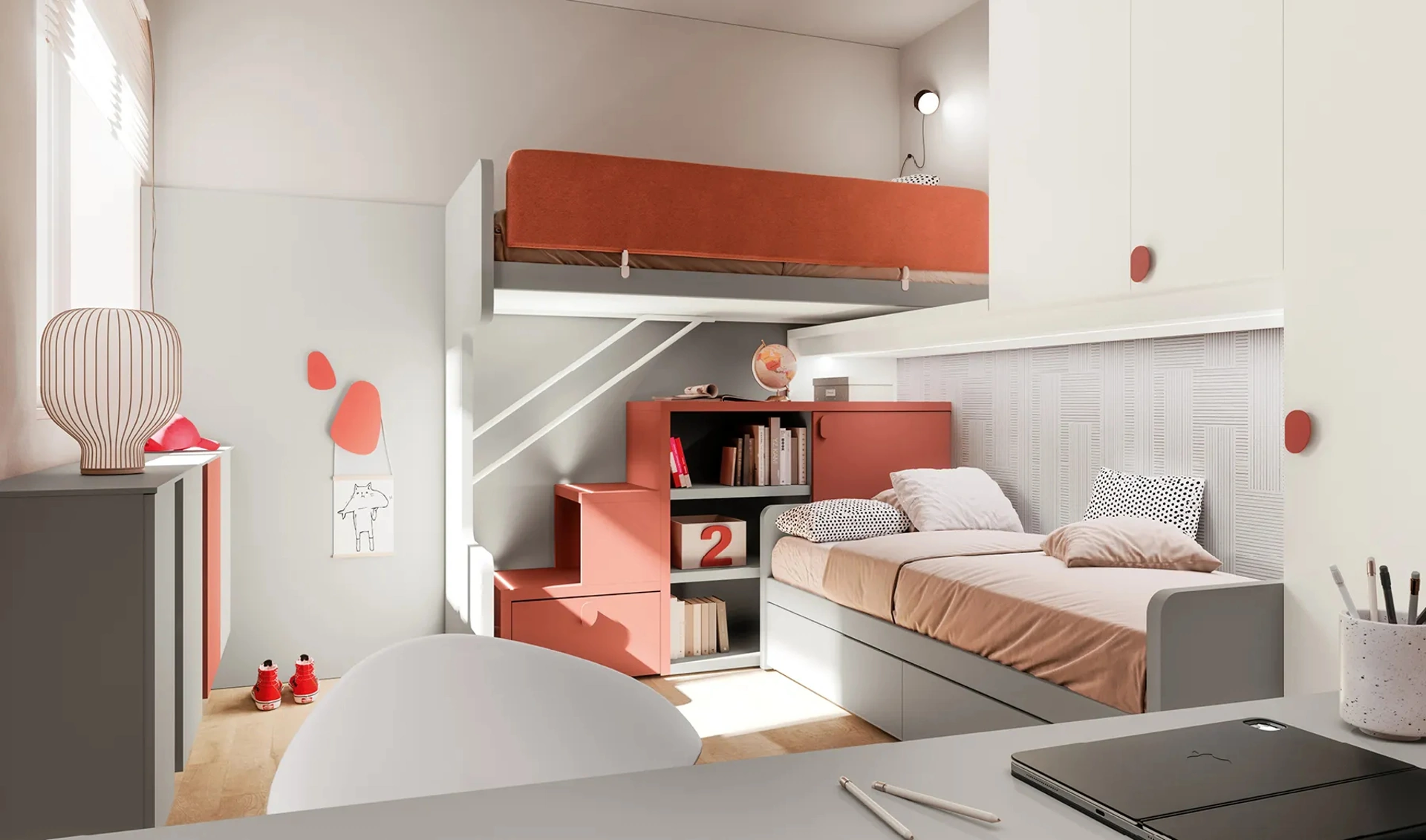 Le soluzioni per bambini a soppalco devono dare vita a spazi pratici e belli: scopri il modello Layout 16B in melaminico