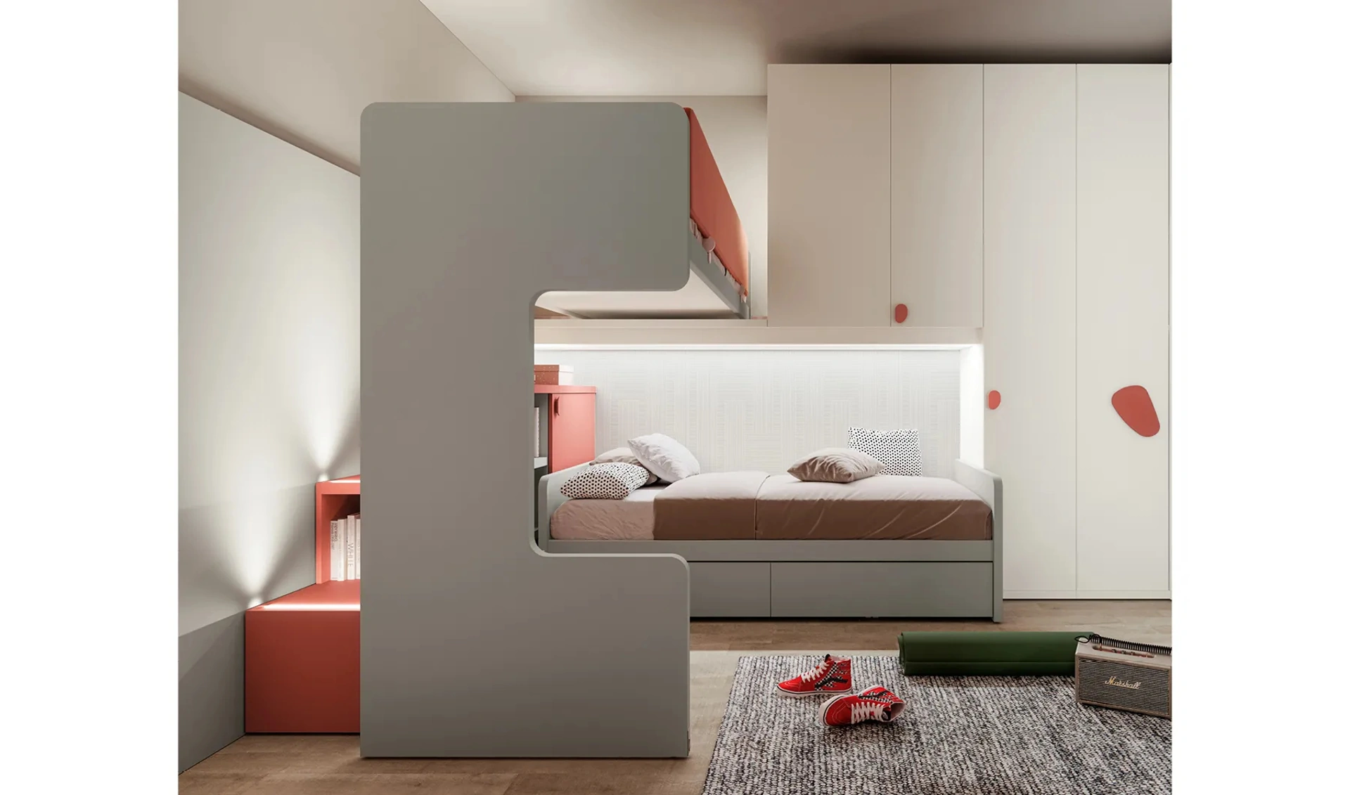 Il modello Layout 16B di Doimo Cityline, una soluzione innovativa per camerette salvaspazio, è ora disponibile con un servizio completo di progettazione e installazione. Le nostre soluzioni con letti a soppalco sono studiate per massimizzare ogni centimetro, ideali per stanze condivise, garantendo funzionalità e design senza compromessi. Offriamo un servizio di consegna e montaggio professionale nelle aree di Lugano, Milano e Como, assicurando che ogni composizione, dai soppalchi angolari ai sistemi multifunzione, sia installata con la massima cura. Le camerette Doimo Cityline sono riconosciute per la loro qualità costruttiva, con materiali tecnici avanzati come ferramenta ammortizzata e vernici atossiche. Il nostro impegno si estende al post-vendita, con un'assistenza dedicata e una solida garanzia che protegge il tuo investimento nel tempo.