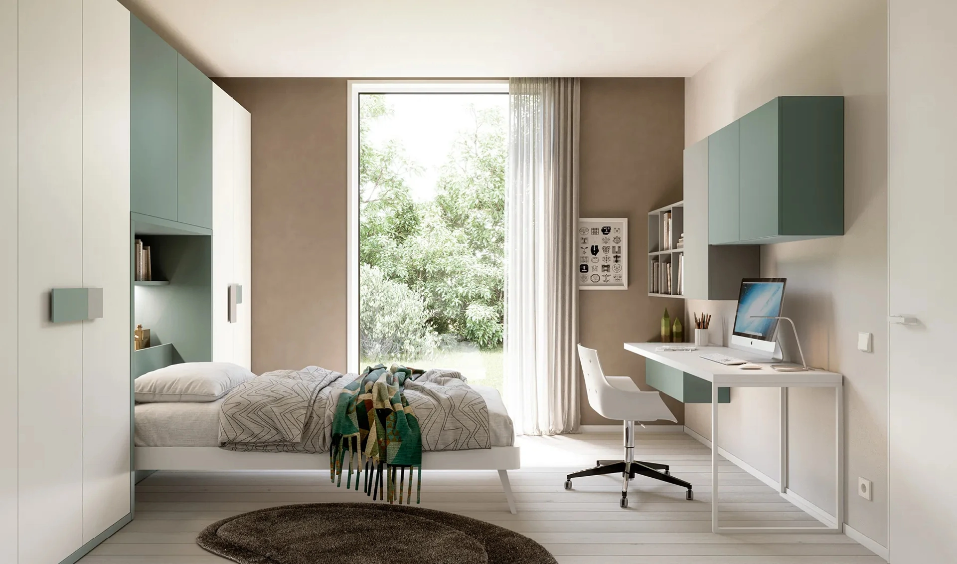 È possibile personalizzare le dimensioni e le finiture della cameretta Layout 03A?Certamente, offriamo la possibilità di personalizzare le dimensioni standard degli arredi per adattarsi al tuo spazio. Inoltre, puoi visionare i campioni di materiali, come tessuti, legni e laccati, nella nostra materioteca per scegliere le finiture perfette.